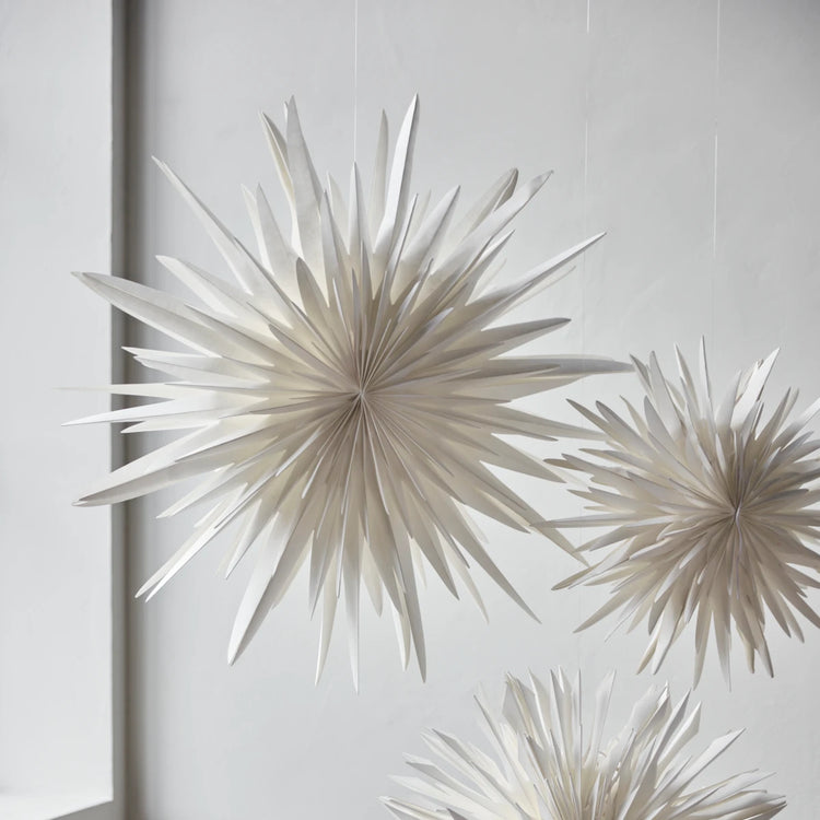 Dust ist ein großer Papierstern, der aus vielen Papierschichten besteht. Das von Flammen inspirierte Design von House Doctor präsentiert sich in einem gebrochenen Weiß, das so klassisch ist, dass du es mit jeder weihnachtlichen Farbpalette kombinieren kannst. Hänge den modernen Stern in dein Fenster oder an die Decke und tauche dein Zuhause in eine wunderbare Festtagsstimmung. Egal ob du ihn mit Silber, Gold oder klassischen Rot- und Grüntönen kombinierst, Dust ist ein vielseitiges Deko-Objekt, das dieses Jahr für ein besonders stylishes und lässig-elegantes Weihnachtsfest sorgt.