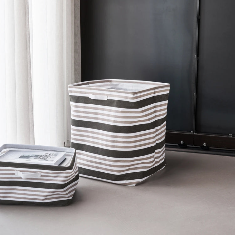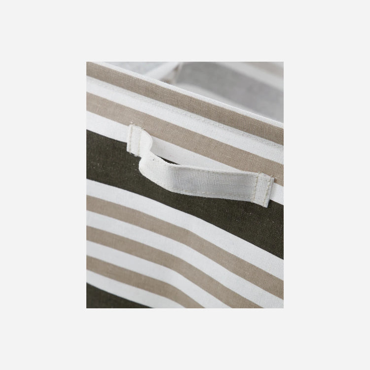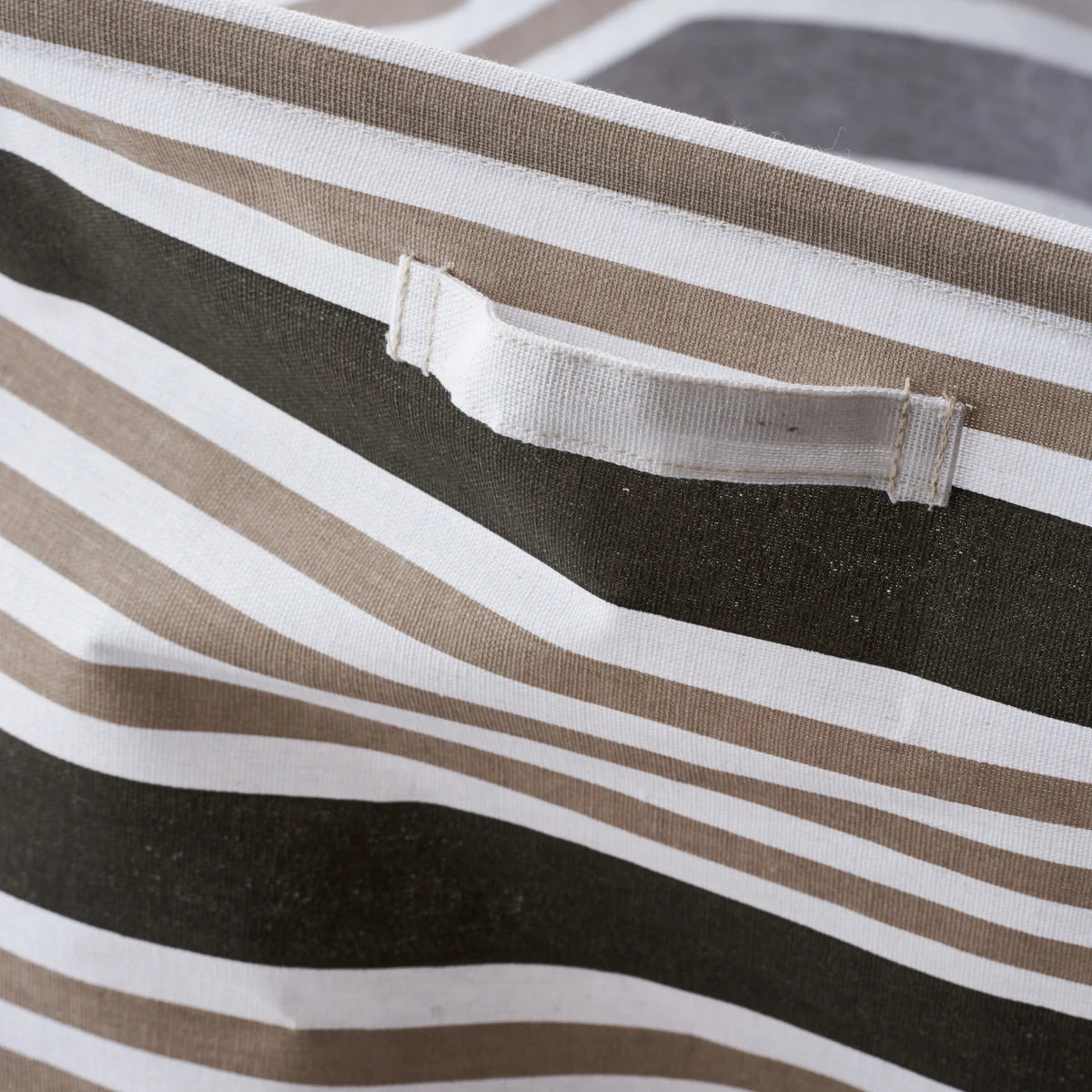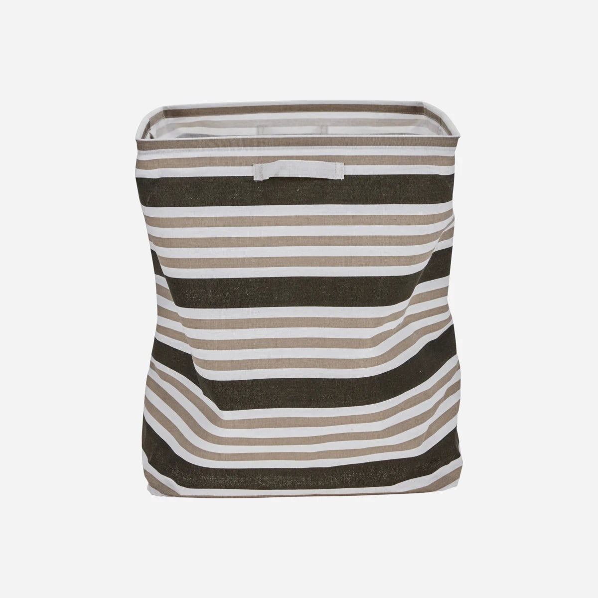 Zeit zum Aufräumen und Organisieren. Der große Store-Aufbewahrungskorb von House Doctor passt überall in Ihrem Zuhause. Mit den braunen Streifen ist dieser Stoffkorb eine lässige Ergänzung für Ihr Regal oder Ihren Kleiderschrank. Der Stoff ist robust genug, um den Korb alleine stehen zu lassen, aber leicht genug, um ihn zusammenklappen zu können, um ihn einfach zu verstauen und Platz zu sparen, wenn er nicht verwendet wird. Um das Design zu einem Teil Ihrer Einrichtung zu machen, stellen Sie den Korb mit Überwürfen oder Zeitschriften gefüllt auf den Boden. Nach dem Entfalten können auf natürliche Weise noch Falten im Stoff entstehen. Dies gilt als Teil des Designs.