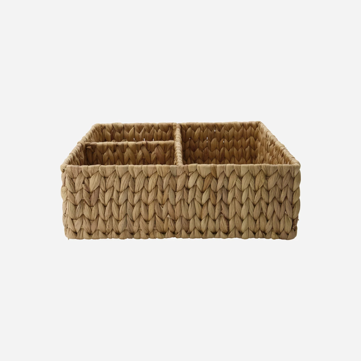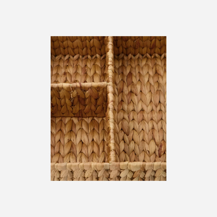 Wir haben doch alle eine unordentliche Schublade, die schon lange darauf wartet, aufgeräumt zu werden. Mit Store von House Doctor ist das ein wahres Kinderspiel. Dank der zwei kleinen Fächer und dem großen Fach ist deine Schublade im Nu perfekt organisiert. Egal ob du den Korb in der Küche oder im Bad verwendest handgeflochtene Wasserhyazinthe ist in jedem Fall ein schöner Ausgleich zu Marmor, Fliesen und Stahl. In Kombination mit unserer Korb-Kollektion aus dem gleichen Material gelingt dir ein abgestimmter Interior-Look mit einer warmen und weichen Ausstrahlung.