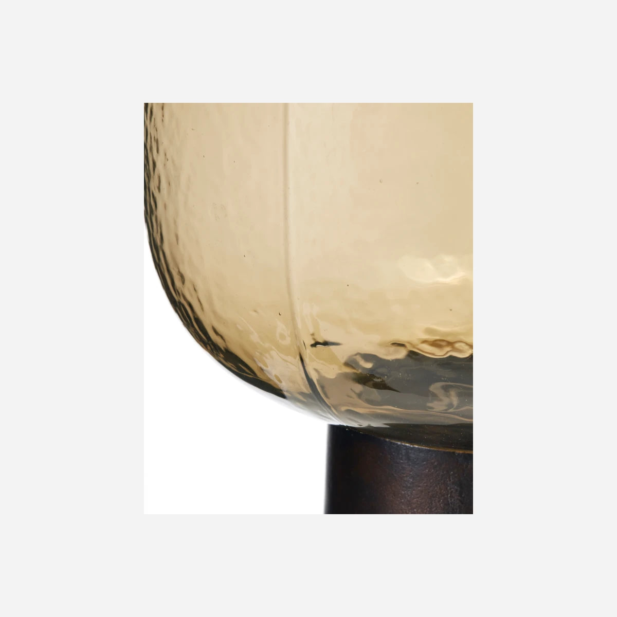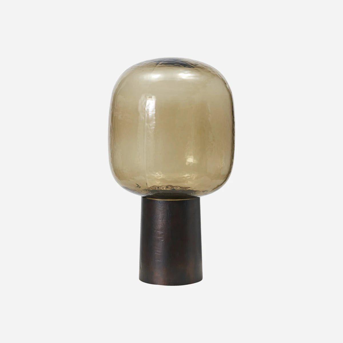 Die Tischlampe Note von House Doctor vereint eine warme Beleuchtung mit einem Design mit Skulpturcharakter. Der große Lampenschirm aus Glas in Hellbraun ruht auf einem Aluminiumfuß in einem dunkleren Braunton. Das Design ist durch und durch harmonisch: Der Lampenschirm ist leicht strukturiert und mit seinem Volumen ein schöner Kontrast zum glatten, kleineren Lampenfuß. Dekoriere deinen Couchtisch mit der Tischlampe, um eine kuschelige Stimmung auf dem Sofa zu schaffen. Das warme Farbschema und das moderne Design machen die Tischlampe Note zu einem echten Klassiker.