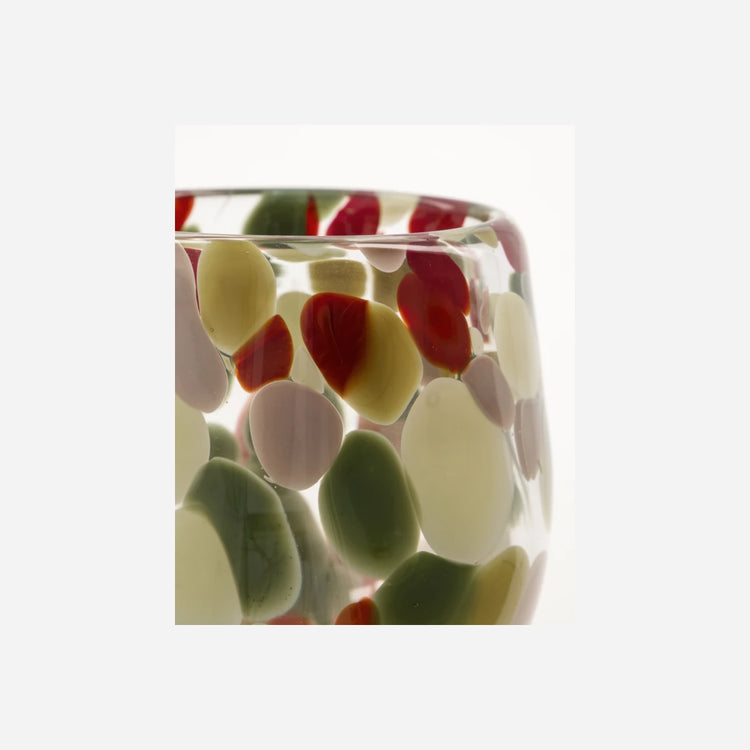 Handgefertigt und mundgeblasen, dieses Glasstück besticht durch sein einzigartiges Design. Mit einem handgemalten Muster in klassischen Farben wie Grün, Rot und Beige bringt es Freude und Farbe in Ihr Zuhause. Dieses stilvolle Accessoire eignet sich perfekt als Dekoration auf Esstischen oder Regalen, wo es allein oder als Teil einer größeren Anordnung erstrahlen kann.- Handgefertigt und mundgeblasen.- Buntes, handgemaltes Muster.- Klassische Farben: Grün, Rot, Beige.- Perfekt als Tischdekoration.Verleihen Sie Ihrem Wohnraum einen Hauch von Farbe und Handwerkskunst.