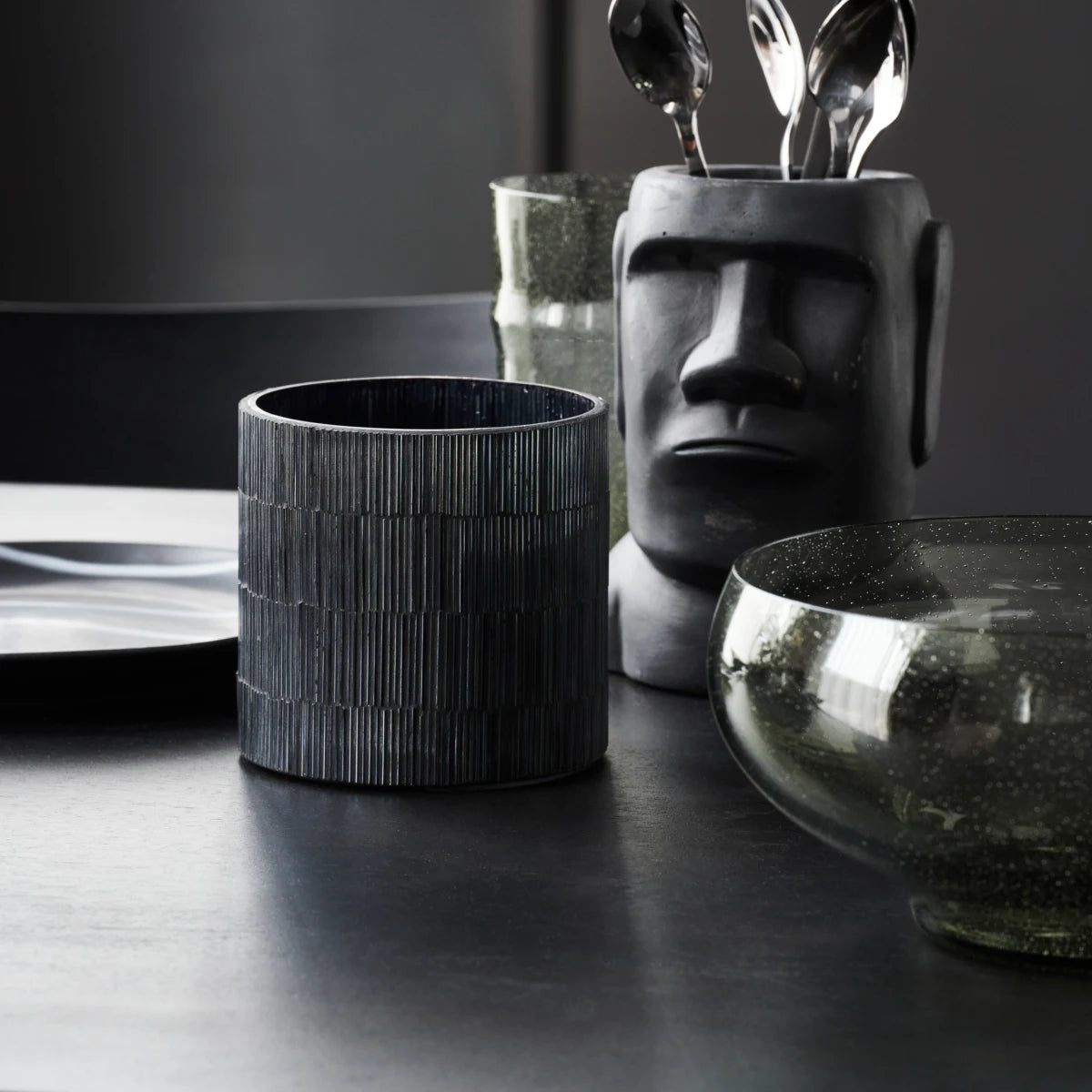 Machen Sie Ihre Couchtischdekoration mit diesem schwarzen Teelichthalter sofort raffinierter. Gara von House Doctor ist handgefertigt und verfügt über eine Mosaikoptik, um einen Kontrast zu glatten Oberflächen und anderen Materialien zu schaffen. Heben Sie das wunderbare Design unter den Kerzenhaltern mit glatten Oberflächen auf einem Tisch oder Regal hervor. Sie können ganz einfach eine auffällige Präsentation erstellen, bei der Sie sich auf die Feinheiten und die Haptik von Mosaik konzentrieren. Aufgrund seiner Größe ist er auch für große Teelichter geeignet.