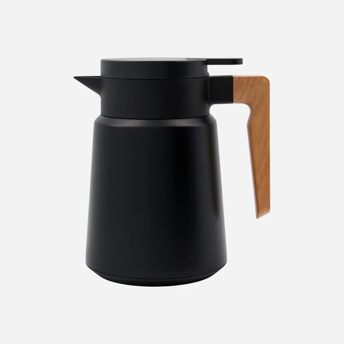 Servieren Sie Ihren Kaffee oder Tee in dieser Thermo-Kaffeekanne von House Doctor. Mit einem Fassungsvermögen von 1 l ist Cole ideal für Ihren Morgenkaffee sowie für eine Nachmittagspause mit Freunden. Für wann immer, wirklich. Der mattschwarze Edelstahl kontrastiert mit der natürlichen Haptik des Buchenholzgriffs und verleiht der Thermo-Kaffeekanne eine zeitlose und lässige Ausstrahlung. Verwenden Sie Cole an jedem gedeckten Tisch oder schnappen Sie sich einfach Ihre Lieblingstasse für eine wohlverdiente Pause während des Tages.