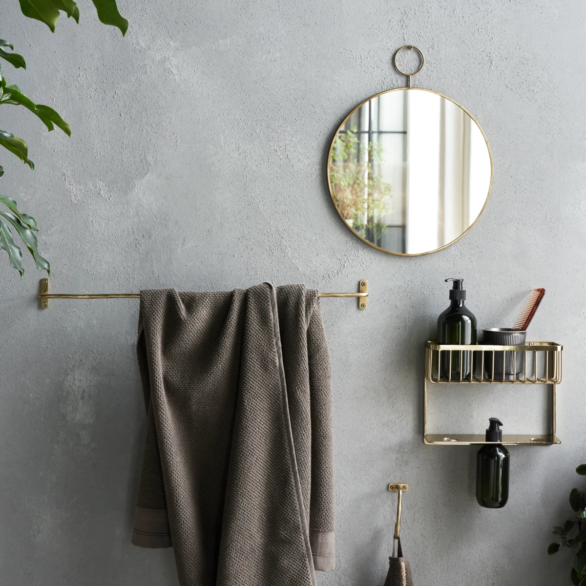 Welo von House Doctor ist ein Handtuchhalter mit gehämmerter Oberfläche, der Ihrem Badezimmer Charme und eine lässige Ästhetik verleiht. Verwenden Sie es zum Trocknen Ihrer Badetücher oder kleineren Handtücher. Wenn Sie Ihrer Badezimmereinrichtung den letzten Schliff verleihen möchten, ist die Welo-Reihe genau das Richtige. Mit seiner Messingfarbe und der gebürsteten Oberfläche vereint dieser Handtuchhalter einen eleganten Farbton mit dem erfrischenden Aussehen einer leicht unebenen Oberfläche, um Ihrem Badezimmer eine einfache Modernisierung zu verleihen.