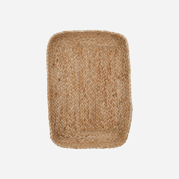 Verleihen Sie Ihrem Zuhause einen Hauch von rustikaler Eleganz mit diesen handgefertigten Jutetabletts. Perfekt zur ordentlichen Aufbewahrung von Büromaterialien oder zum Präsentieren kleiner Gästehandtücher im Badezimmer, kombinieren diese Tabletts Funktionalität mit Stil.- Handgefertigtes Kunsthandwerk- Natürliches Jutematerial- Set aus zwei Größen- Vielseitig einsetzbar im Büro oder BadezimmerVerschönern Sie Ihr Zuhause mit diesen schönen und praktischen Tabletts.