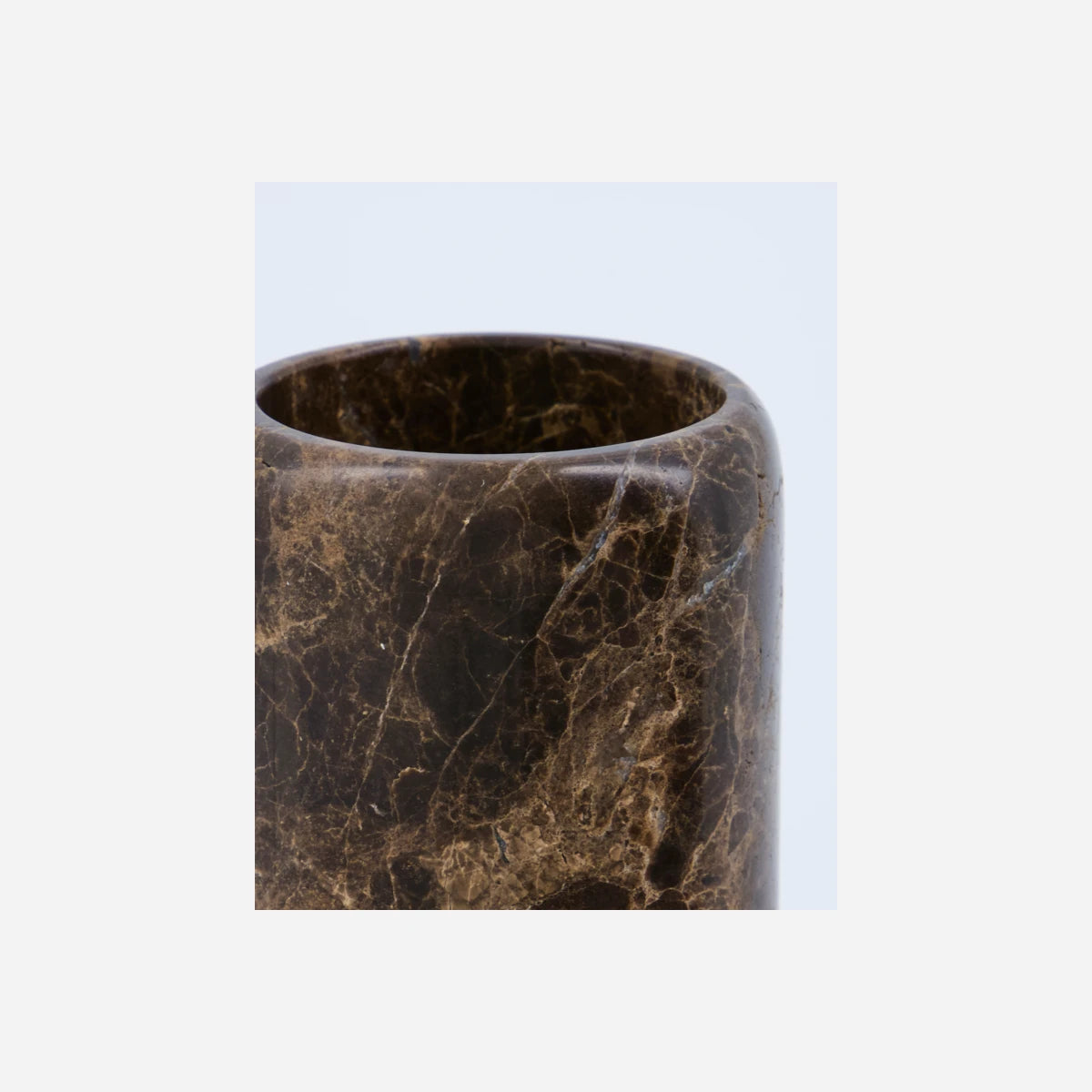 Ein Hauch von Luxus für Badezimmer oder Schreibtische: Dieser Becher aus massivem, braunem Marmor begeistert mit seiner einzigartigen Maserung und der eleganten, polierten Oberfläche. Jede Becher ist ein echtes Unikat – harmonisch, schwer und zeitlos. Ob als Zahnputzbecher, für Make-Up-Pinsel oder als außergewöhnliche Vase – die vielseitigen Möglichkeiten machen ihn zum absoluten Liebling. Kombinierbar mit anderen Accessoires aus Marmor für ein stimmiges, edles Ambiente.