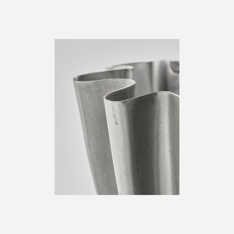 Diese Vase aus handgefertigtem Eisen verleiht Ihrem Heim ein Mehr an Modernität. Das gebürstete Silberfinish und der markante Faltenwurf sorgen für einen dynamischen Look, der rauen Industriecharme mit zeitloser Eleganz vereint. Als stilvoller Akzent auf dem Regal, dem Couchtisch oder auf der Fensterbank – ideal, um jedem Raum neue Frische zu geben.