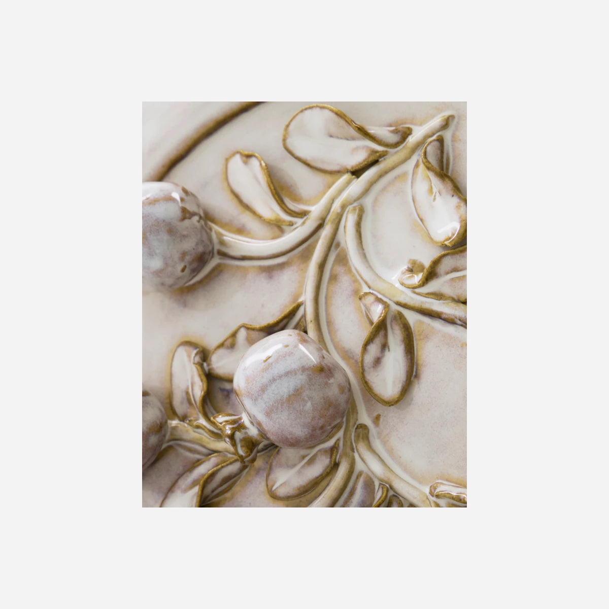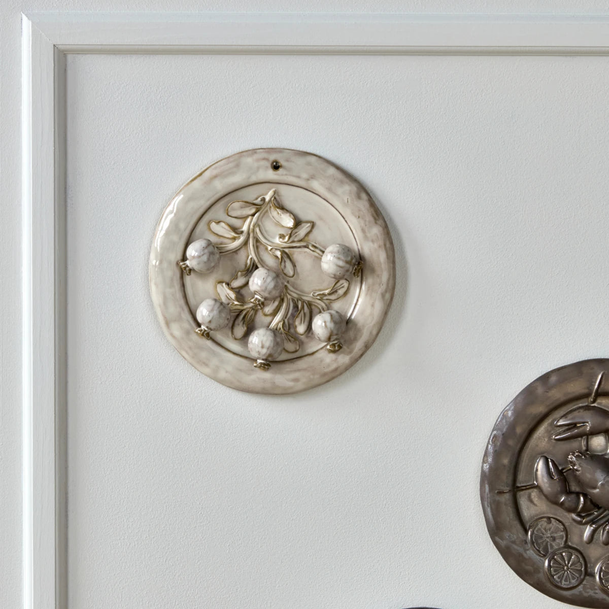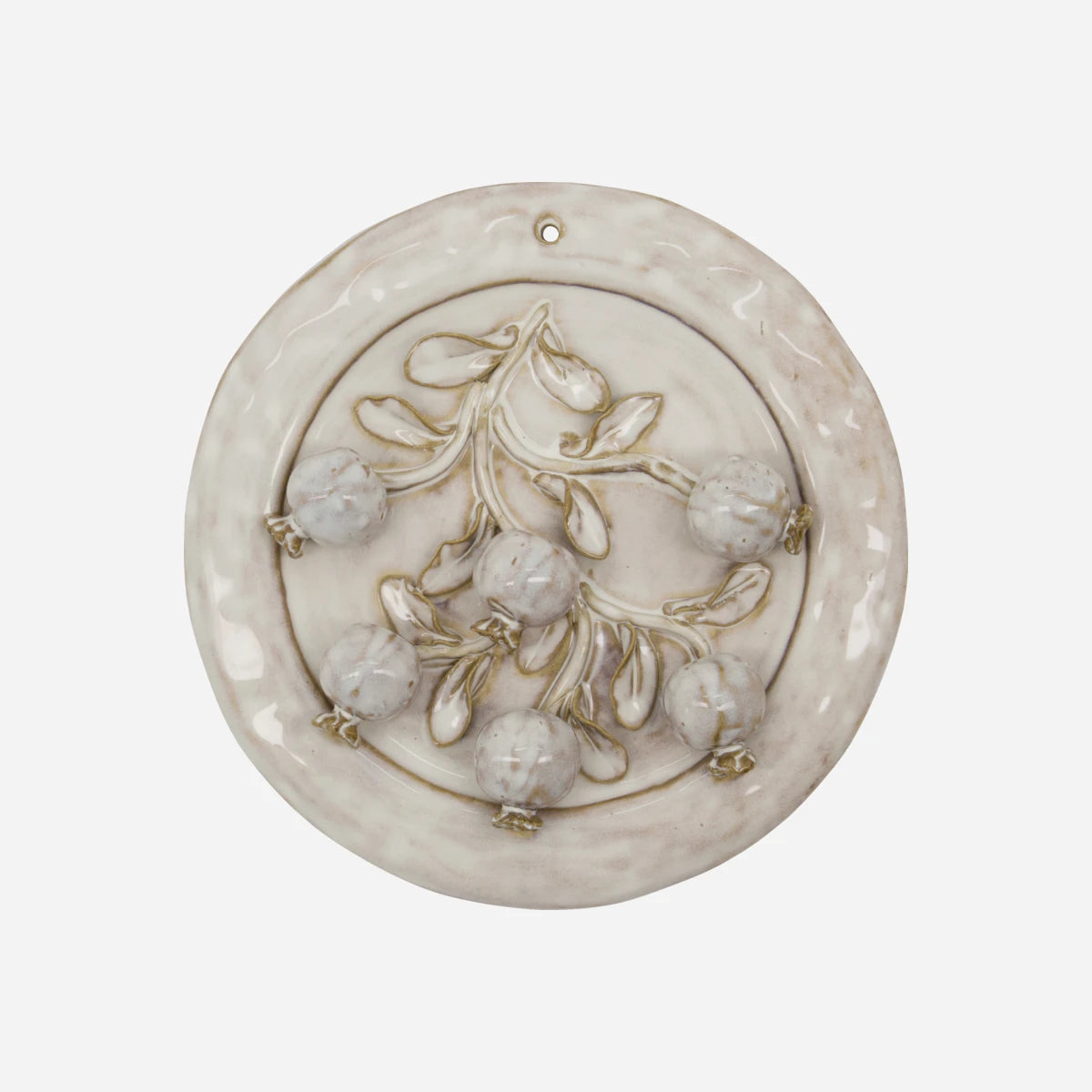Dieses Wandobjekt aus handgefertigtem Steinzeug verleiht Ihrem Heim einen eleganten, modernen Touch und bringt mit seiner runden Form und der zarten cremefarbenen Glasur Frische an die Wände.
