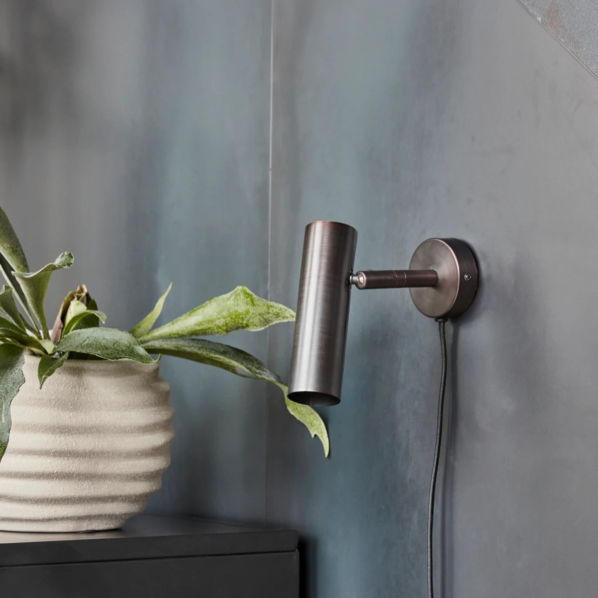 This wall lamp from House Doctor is a minimalist and contemporary addition to your home décor. Providing a functional focus light, you can move the lampshade itself sideways, up and down to where you need the light. Its shapes and the finish of the black colour exude clean-cut functionality without any unnecessary detailing. There is no excess detailing in this design which is to the point and stripped back to really highlight the material. Mount the lamp on the wall by your seating arrangement, by your bed or wherever you want to bring focus on a piece of furniture or décor.