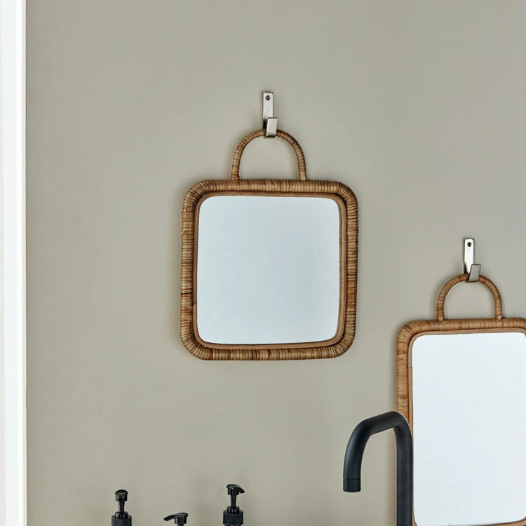 Gib deinem Wohnraum einen lässigen Touch mit diesem viereckigen Spiegel mit Rattanrahmen. Das natürliche Material bildet einen weichen Kontrast zu Marmor und Keramik und sorgt in jeder Einrichtung für Textur. Benutze den Spiegel von Meraki, um dein Make-up zu kontrollieren, bevor du aus dem Haus gehst, oder lass ihn einfach Teil deiner Einrichtung werden zwischen Postern und anderer Wanddeko. Ein entspannter Look, der im Schlafzimmer oder Flur für helle und freundliche Akzente sorgt.