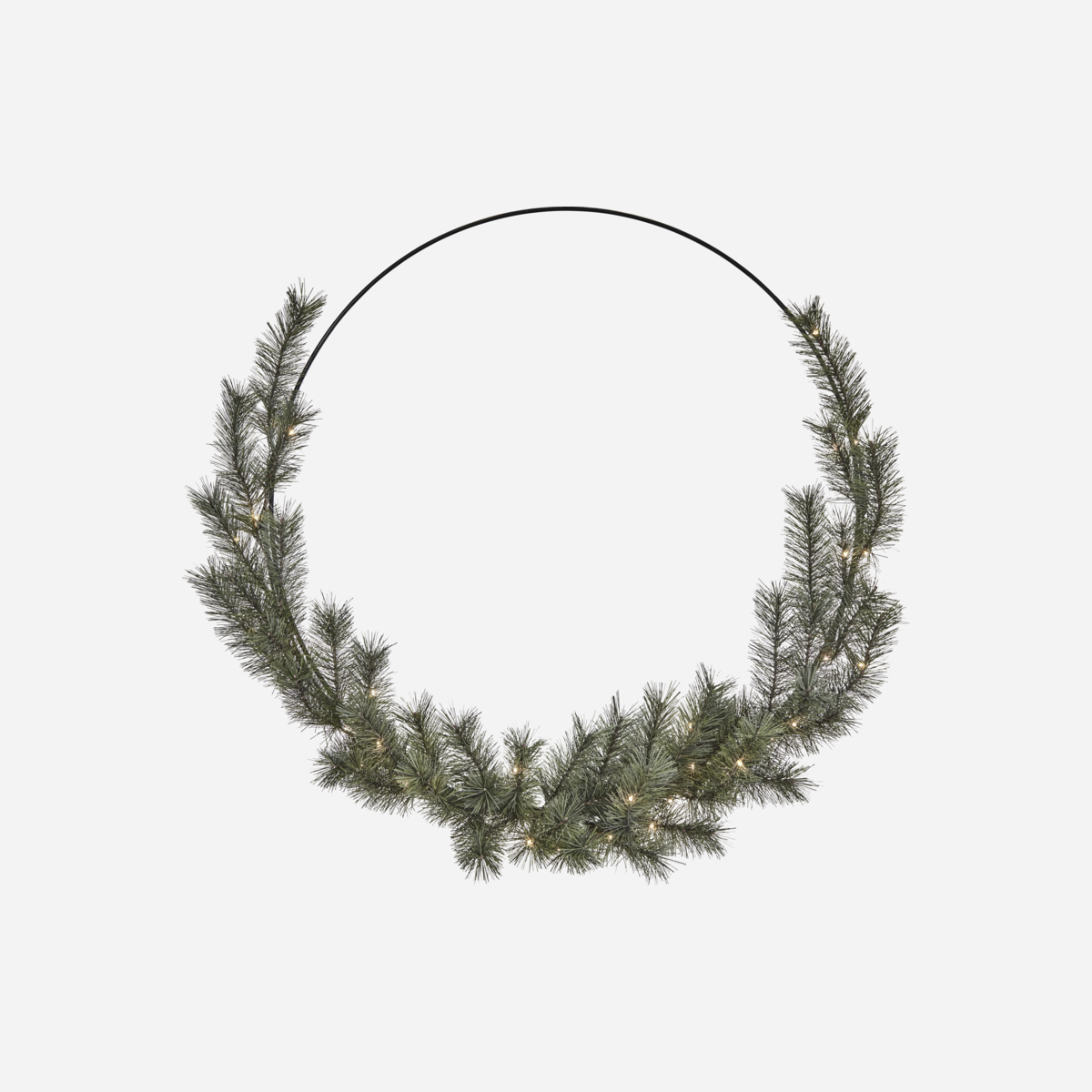 Mit diesem Kranz von House Doctor sorgst du für eine einladende und weihnachtliche Stimmung. Der Kranz hat 35 LEDs, die durch die Kunsttanne überall für Licht an dunklen Abenden sorgen. Der Kranz ist so schon ein Hingucker - im Flur oder im Wohnzimmerfenster, aber du kannst ihn auch für noch mehr weihnachtliche Stimmung mit deinem Lieblingsschmuck dekorieren. Dank der Timerfunktion bleibt er bis zu 6 Stunden am Stück eingeschaltet.