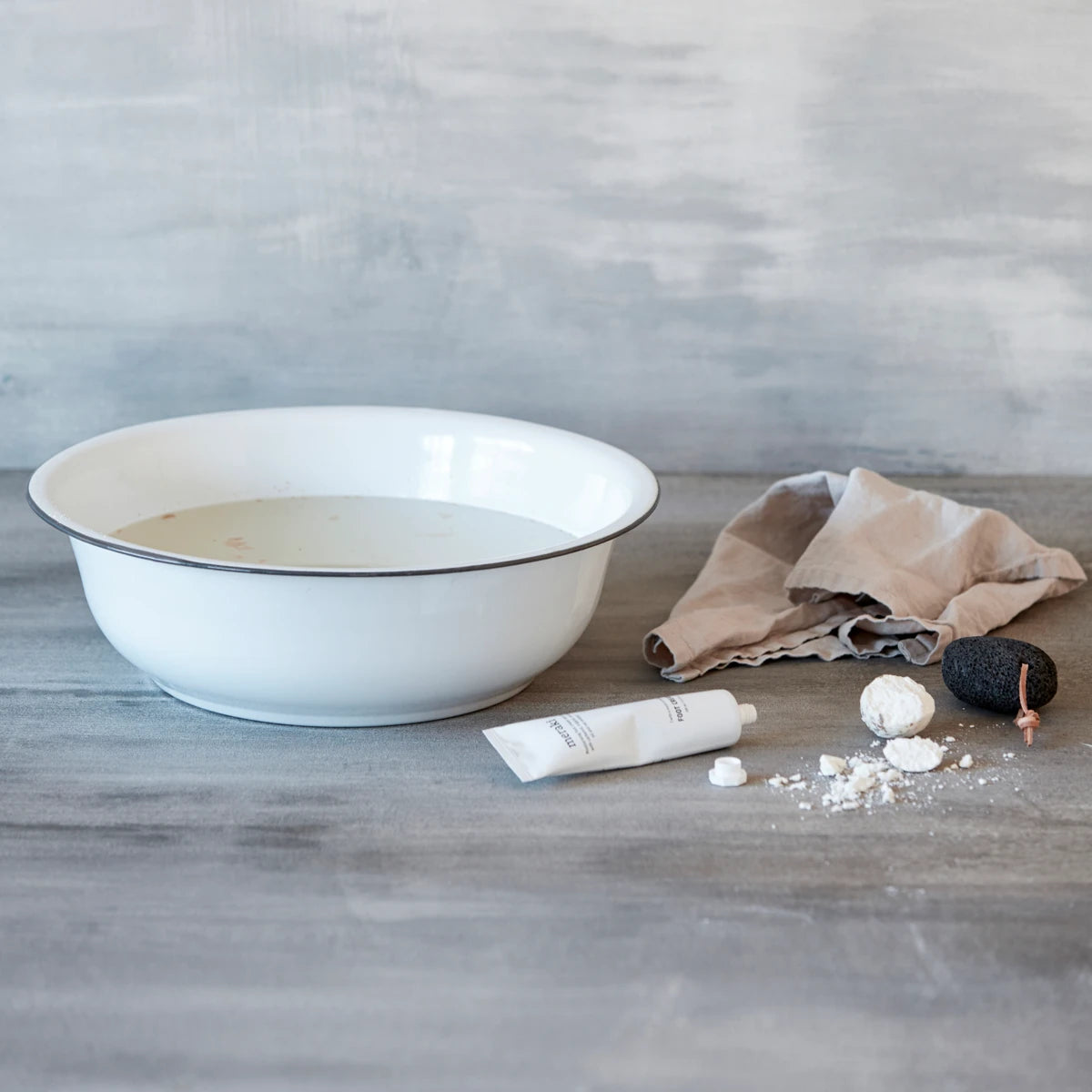 Gönn dir einen Moment der Ruhe und nimm ein Fußbad in dieser großen, schlichten Waschschüssel von Meraki. Die Größe passt auch perfekt in die Küche und kann wunderbar für den Abwasch verwendet werden. Mit ihrem einfachen Design aus flächendeckendem Weiß mit einem dunklen Rand erinnert die Waschschüssel Large an öffentliche Badeeinrichtungen aus längst vergangenen Zeiten und bringt eine gewisse Ruhe in deine Badezimmerdeko. Etwaige Unebenheiten auf der Oberfläche sind Teil des Designs und machen den Charme dieses Produkts aus.