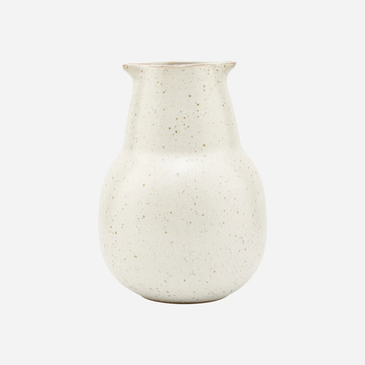Ein schönes Kännchen für Milch, Sahne oder Dressings kann deinem Tischgedeck den letzten Schliff geben. Der ganze Tisch sieht so clean und aufgeräumt aus, weil keine Verpackungen oder andere Ablenkungen auf ihm zu finden sind. Das kleine Porzellankännchen kommt in einer weißen, gesprenkelten Glasur, die ihm eine lässige und stylishe Ausstrahlung verpasst. Verwende es als Milchkännchen für deinen Nachmittagstee und -kaffee oder präsentiere dein Lieblingsdressing auf stylishe Art. Dieses Kännchen passt wunderbar zum Rest der Pion-Geschirrkollektion oder zu Tafelgeschirr in ähnlichen hellen Tönen. Aufgrund der matten Textur der Glasur kann es bei Gebrauch des Artikels aus der Pion-Kollektion mit der Zeit zu Kratzern auf der Oberfläche kommen. Das verstärkt jedoch nur den rustikalen Charme des Designs.