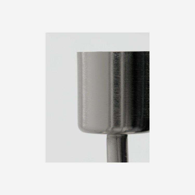 Der Kerzenständer HDAnit ist ein wunderschönes Stück Eisenhandwerk mit einem Silberfinish, das eine perfekte Balance zwischen raffinierter Eleganz und einer rauen, industriellen Kante schafft.