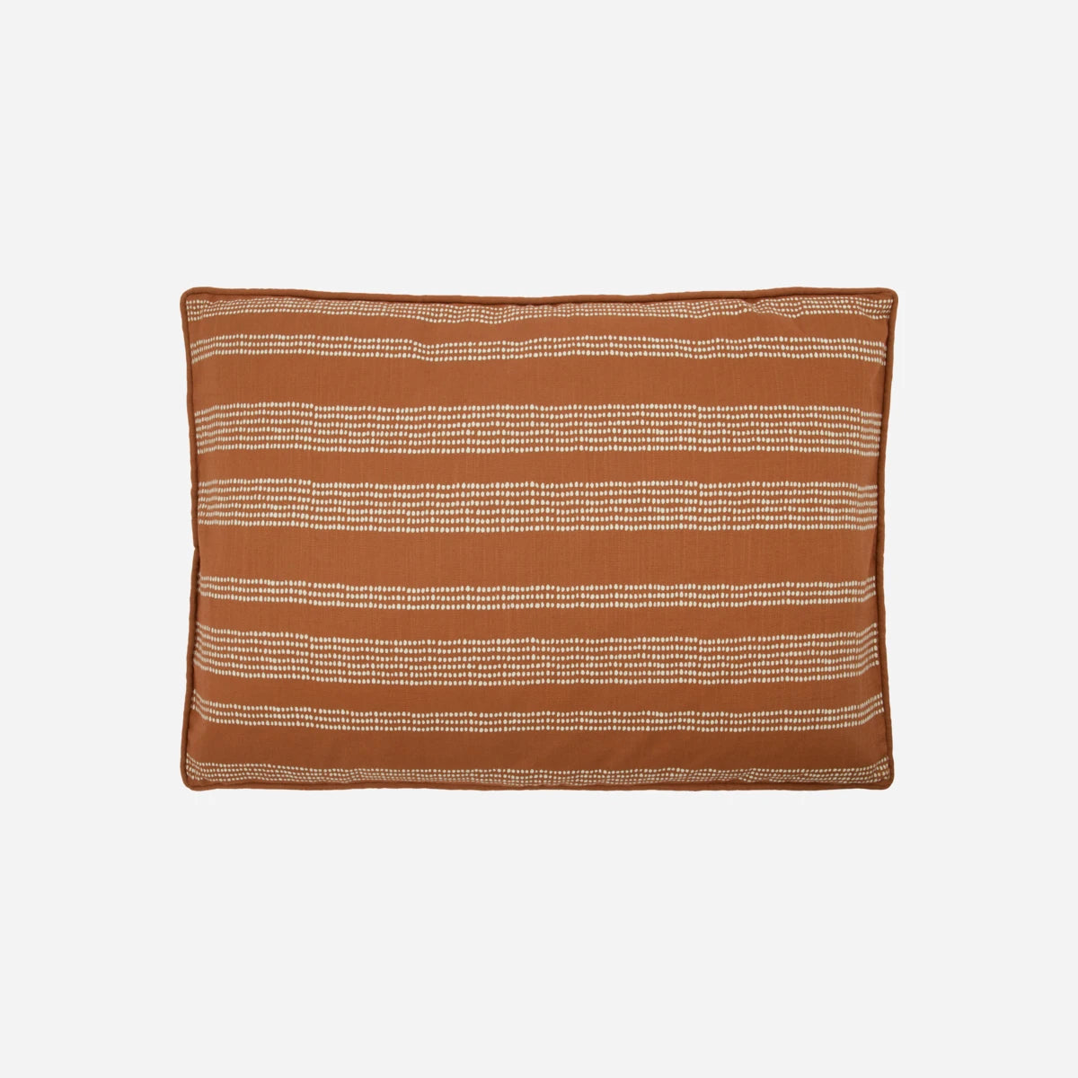 Verleihen Sie Ihrem Sofa mit diesem charmanten Kissenbezug in Terrakotta-Farbe einen Hauch von Gemütlichkeit. Die handbedruckten Punkte formen ein ansprechendes Streifenmuster, das mit einer einfarbigen Paspel an den Kanten abgerundet wird. Dieser weiche Bezug ist aus Baumwolle gefertigt und dank seiner Oeko-tex Zertifizierung frei von schädlichen Stoffen. Ein unverzichtbarer Begleiter für Ihr Wohnzimmer.- Handbedruckte Punkte in Streifenmuster.- Einfarbige Paspelierung entlang der Kanten.- Oeko-tex Zertifikat für Sicherheit.- Unverzichtbarer Komfort für Ihr Sofa.Bringen Sie Stil und Komfort in Ihr Wohnzimmer.