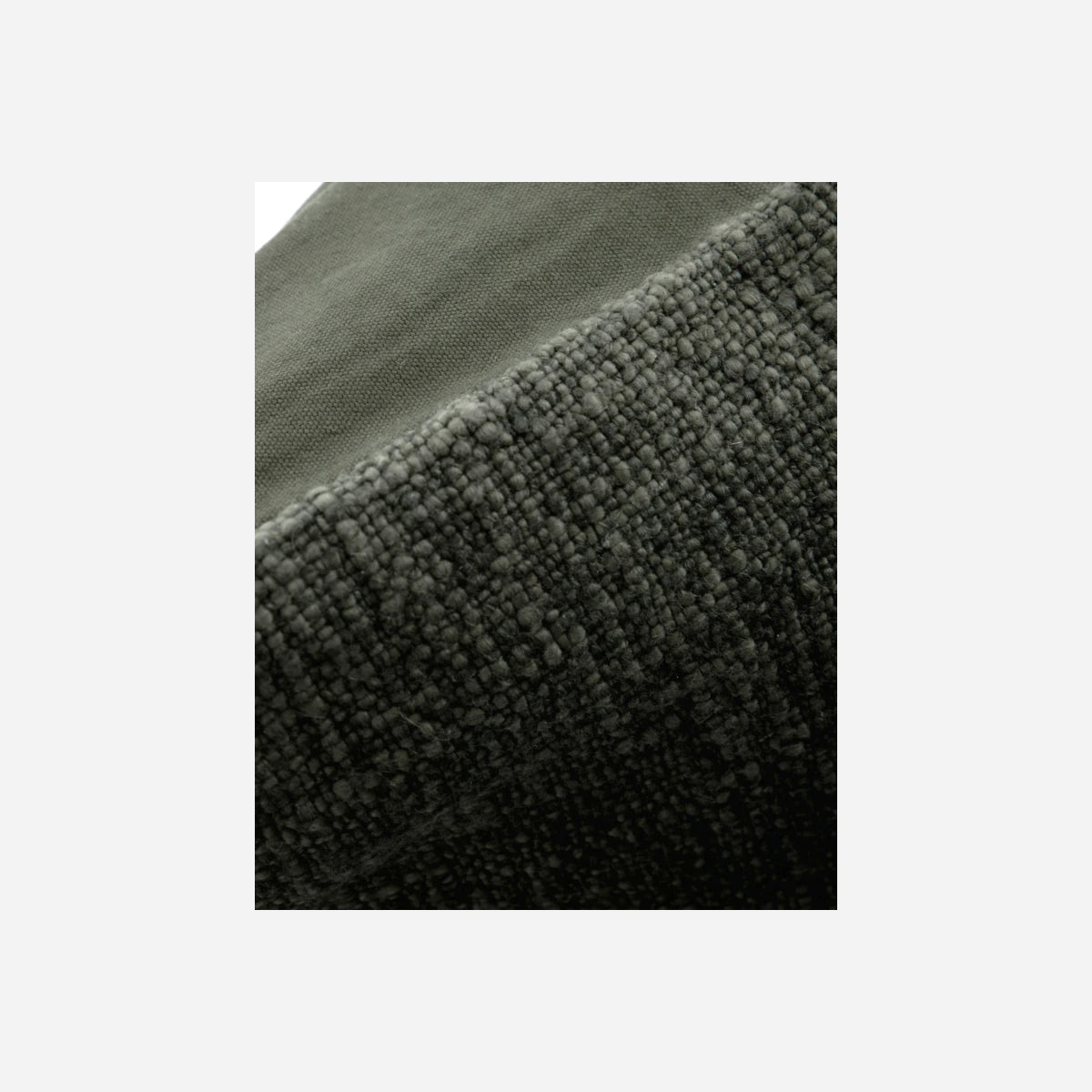 Dieses dunkelgrüne Kissenbezug mit seiner strukturierten Stoffoberfläche und den gefransten Kanten verleiht Ihrem Sofa oder Bett einen unkonventionellen Touch. Handgefertigt aus einer Mischung aus Baumwolle, Leinen und Lyocell, bringt es Wärme und Stil in jeden Raum.- Unkonventionelles grobes Gewebe- Gefranste Kanten- Reißverschluss- Handgefertigtes UnikatVerleihen Sie Ihrer Inneneinrichtung mit diesem exquisiten Kissenbezug das gewisse Etwas.