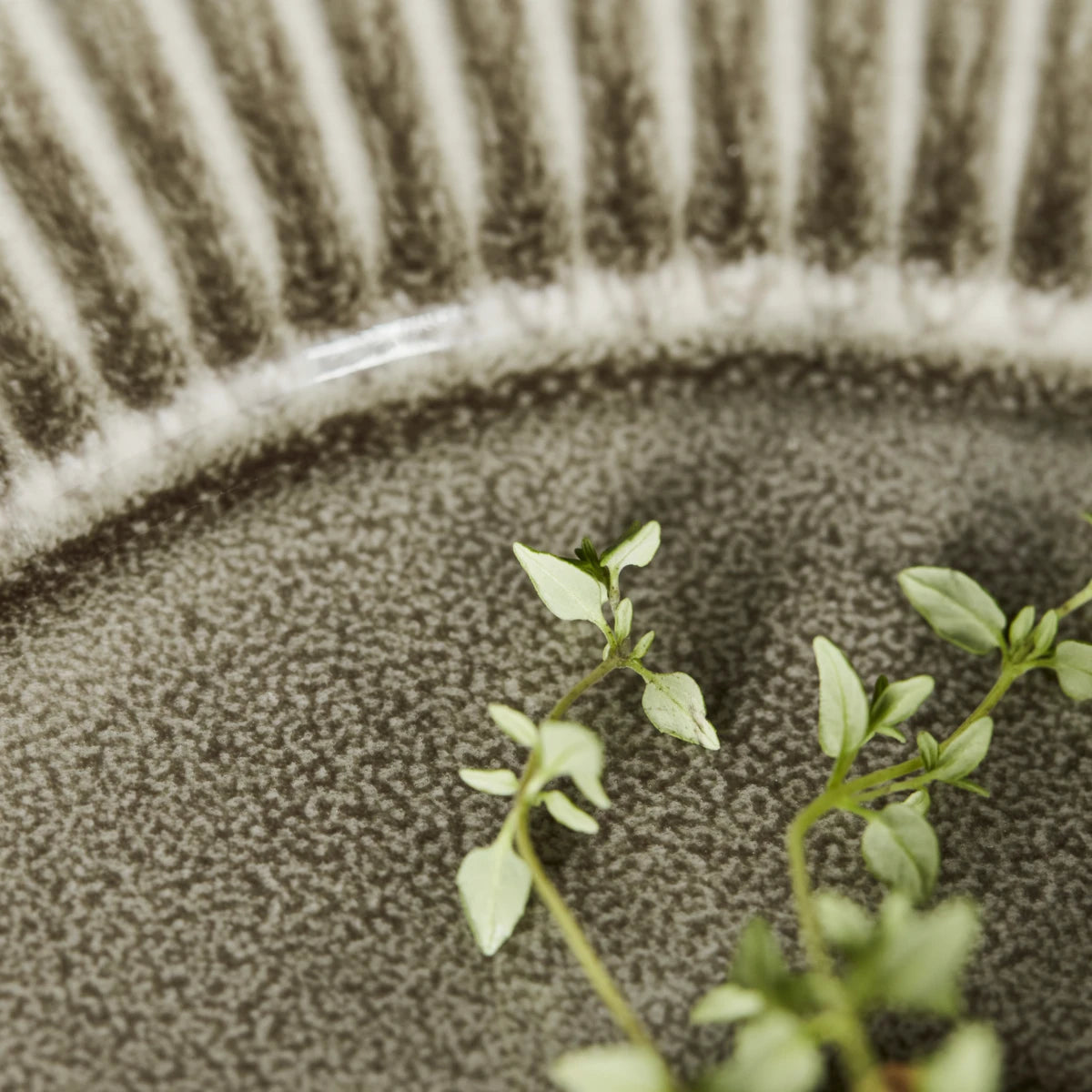Dieser Teller von House Doctor ist ideal für den schlichten, aber dennoch elegant gedeckten Tisch. Das geriffelte Design mit einer matten Außenseite und glänzenden Innenseite verleiht deinem Tisch die genau richtige Menge Stil und Eleganz. Was aussieht wie ein einfaches, alltägliches Design sticht beim näheren Hinsehen heraus. Vollende den Look mit ähnlichem Geschirr, oder kombiniere unterschiedliche Farben und Materialien für einen persönlichen Ausdruck.