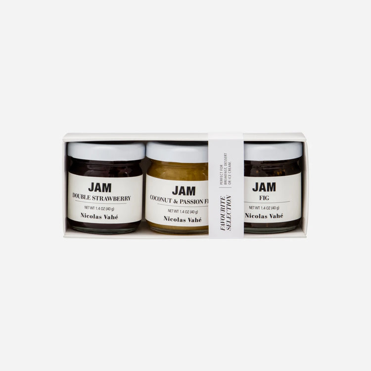 Probieren Sie drei der beliebtesten Marmeladen von Nicolas Vahé oder machen Sie sie zu einem Teil eines durchdachten Geschenkkorbs. Die doppelte Erdbeermarmelade ist eine frische Interpretation eines echten Klassikers, hergestellt aus saftigen Erdbeeren vom Feld und den aromatischen Erdbeeren aus dem Wald. Die Feigenmarmelade eignet sich hervorragend für eine Käseplatte oder ein Stück frisch gebackenes Brot. Die letzte Marmelade ist eine Kombination aus Kokosnuss und Passionsfrucht, die nach sonnigen Tagen auf einer tropischen Insel schmeckt.