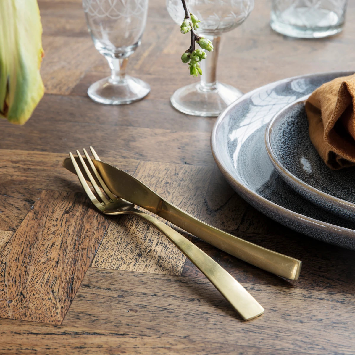 Begrüßen Sie Ihre Gäste mit einem schönen, gut gedeckten Tisch. Das umwerfende Goldmesser von House Doctor heißt Golden und mit ihm können Sie den schönsten Tisch gestalten. Das Messer besteht aus rostfreiem Stahl mit einer anschließenden Goldbeschichtung, die dem Messer ein kühles und alternatives Aussehen verleiht. Golden misst 22,2 cm in der Länge und ist der perfekte Gegenstand für eine einzigartige und persönliche Tischdekoration wie keine andere. Dieses Messer ist spülmaschinenfest.