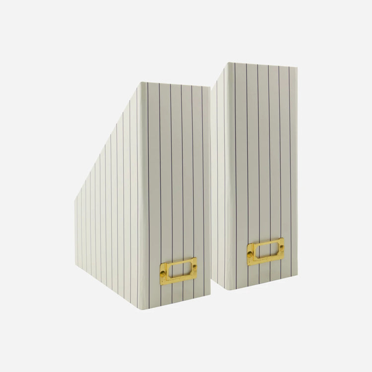 Schaffe Ordnung mit Stil. HDHold ist ein Set aus zwei Zeitschriftenhaltern, das dir dabei hilft, Dokumente und Magazine ordentlich aufzubewahren. Die sanfte Sandfarbe und das gestreifte Design verleihen deinem Bücherregal oder Schreibtisch eine ruhige und persönliche Note.