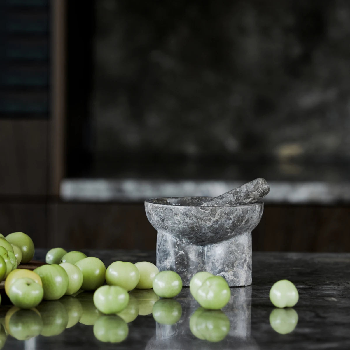 Setzen Sie diesen Mörser von House Doctor auf Ihrem Küchentisch in Szene und verwenden Sie ihn als hervorragendes Küchenwerkzeug, um Ihre eigenen köstlichen Gewürzmischungen herzustellen. Der Mörser namens Kulti wird mit einem passenden Stößel in der gleichen Farbe und im gleichen Stil geliefert. Die skulpturale Form verleiht einen rohen Ausdruck, der ein besonderes Zusammenspiel mit den Grau- und Brauntönen bildet. Durch das robuste und zugleich dekorative Material entsteht ein schönes und funktionales Design, das Ihre Küchenausstattung perfekt ergänzt.