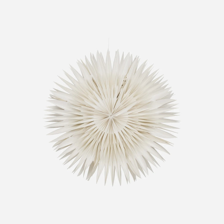 Dieser handgemachte Papierstern von House Doctor vollendet jede Weihnachtsdeko. Der Stern besteht aus mehreren Papierschichten und verleiht deiner Einrichtung einen zeitlosen Hauch von Eleganz. Er lässt sich prima mit einer Fassung und Birne aufleuchten. Der moderne Stern macht sich toll im Fenster oder von der Decke hängend, wo das Licht durch das Papier scheinen kann. Egal, ob mit anderem weißen Schmuck oder in Kombination mit anderen Farben, wird der Stern an Weihnachten eine stilvolle Ergänzung sein.