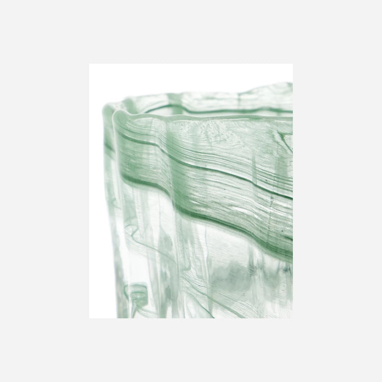 - Glas mit Wirbelmuster in einem erdigen Grünton