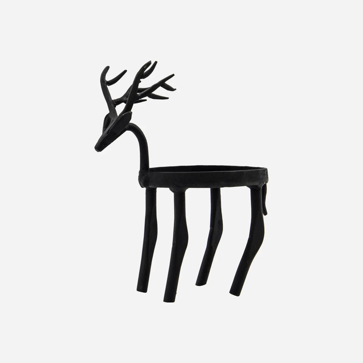 Bringen Sie festliche Stimmung in Ihr Zuhause mit diesem charmanten Teelichthalter in Form eines Rentiers. Aus 100% mattschwarzem Eisen gefertigt, vereint er Robustheit und Eleganz. Perfekt für stimmungsvolle Weihnachtsdekorationen.