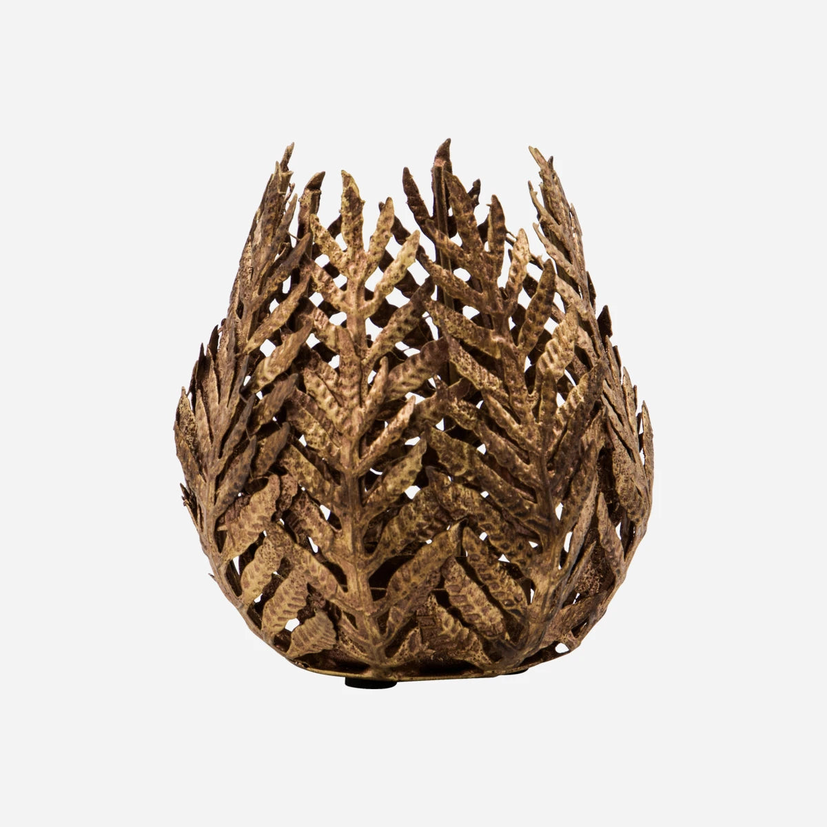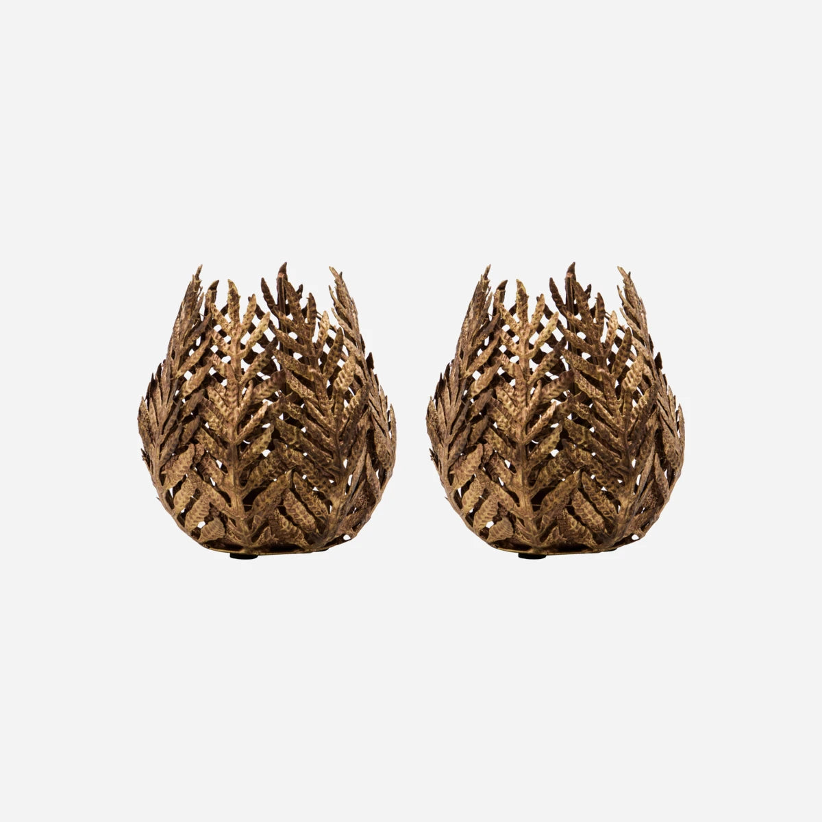 Dieser handgefertigte, goldfarbene Teelichthalter aus Eisen verleiht jedem Ambiente einen antiken Charme. Mit seiner weichen, femininen Form lässt er sich wunderschön mit anderen Teelichthaltern kombinieren, unabhängig von Material oder Farbe, und verleiht Ihrer Einrichtung eine elegante Note.- Antikgold-Optik- Handgefertigtes Unikat- Vielseitige Dekorationsmöglichkeiten- Zweier-SetErleuchten Sie Ihren Raum mit zeitloser Eleganz.