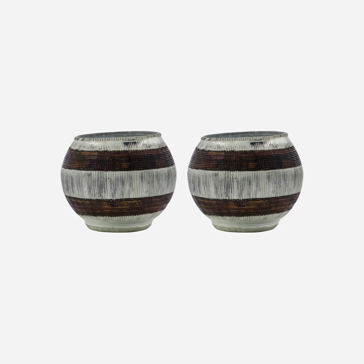 Teelichthalter, HDStripe, Silber-Finish;Braun