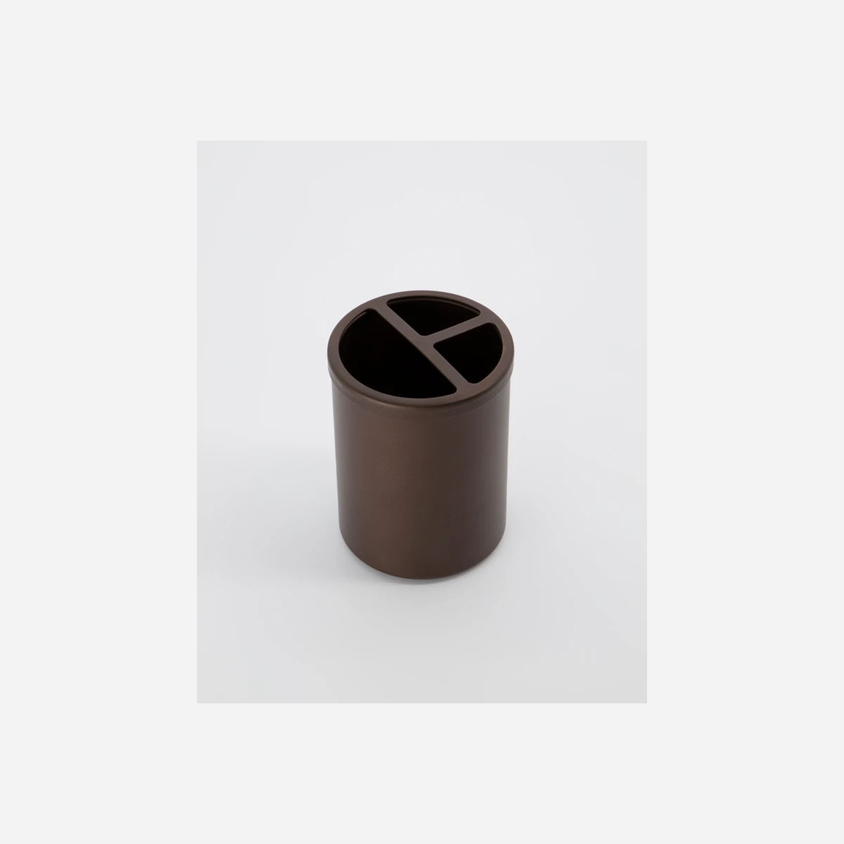 Verwende diesen Aluminium-Becher für ein schnelles Badezimmer-Makeover, das wirklich nicht die Welt kostet. Bush wurde von House Doctor designt und kommt in einem matten Braunton daher, der deiner Badezimmerdeko einen zeitlosen und doch modernen Touch verleiht. Du kannst ihn als Zahnbürstenbecher nutzen und deine Zahnbürsten in die zwei kleineren Fächer stellen, während das große Fach perfekt für Zahnpasta ist. Wenn du den Becher reinigen möchtest, kannst du ganz einfach den Deckel abnehmen. Kombiniere ihn mit dem Seifenspender im gleichen Design um einen einheitlichen Look zu erzielen.