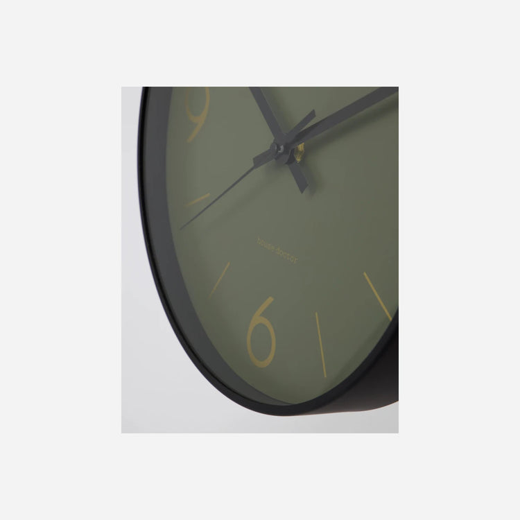 Tilføj et afslappet touch til din indretning med dette runde vægur fra House Doctor. Den mørkegrønne farve kombineres med de guldfarvede tal og den sorte ramme for at skabe et design, der passer til enhver indretningsstil. Hæng det på køkkenvæggen eller i din stue imellem dine plakater og andre kunstværker på væggen. Brug det ethvert sted, hvor du gerne vil have styr på, hvad klokken er.