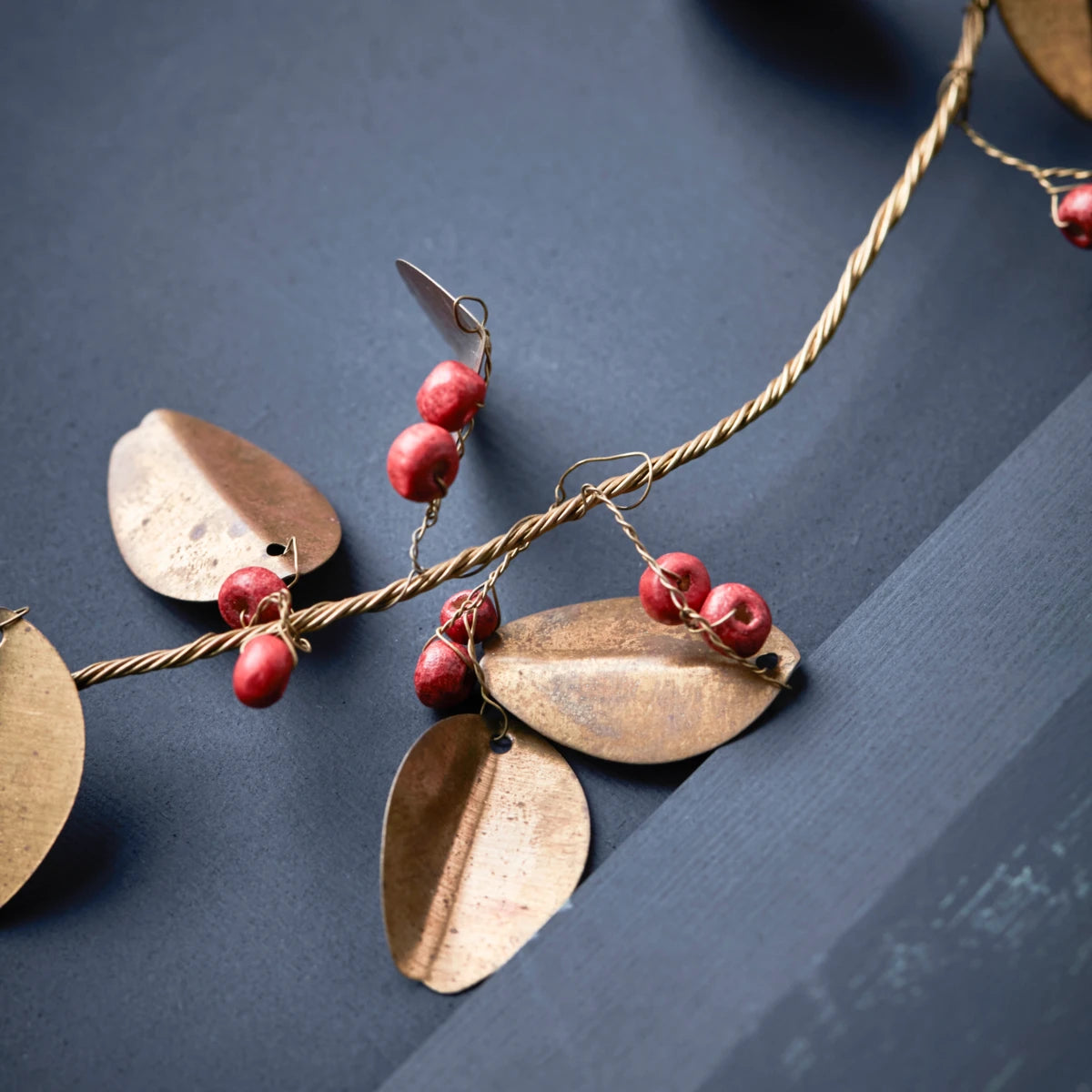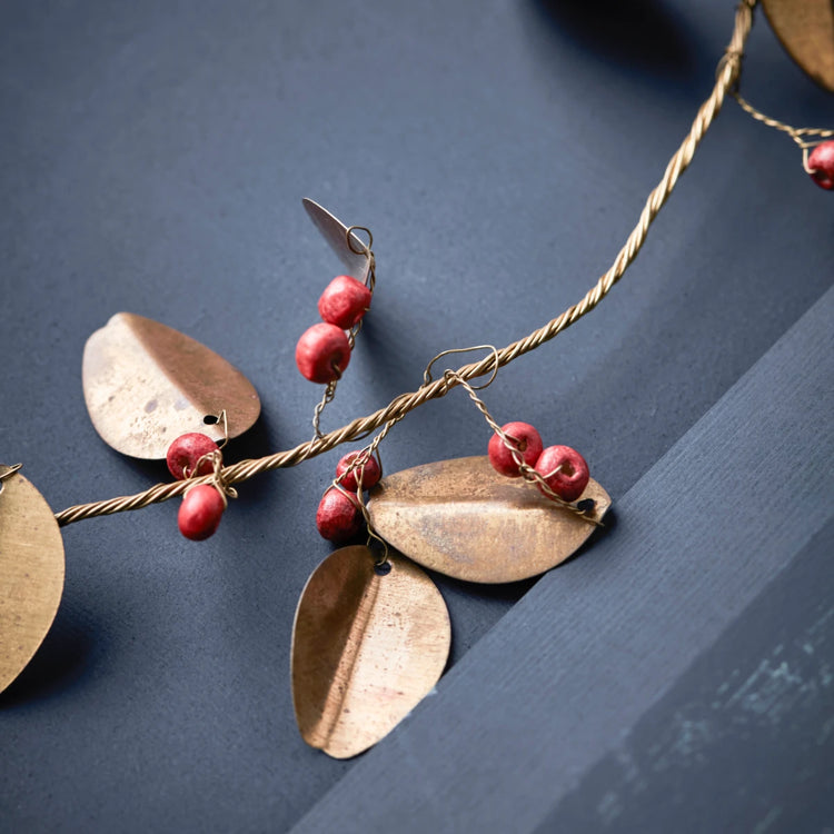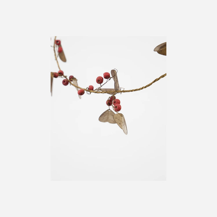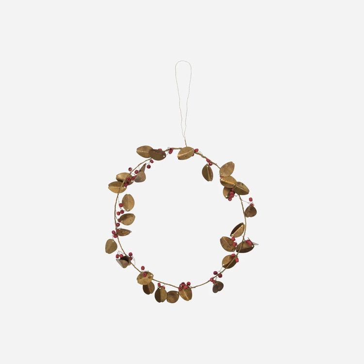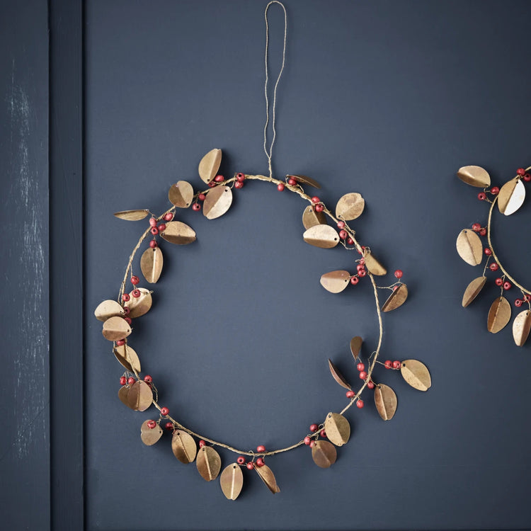 Nichts schlägt einen Kranz, wenn es um Weihnachtsdeko geht. Mit diesem großen, handgemachten Kranz mit goldenen Messingblättern und roten Holzperlen von House Doctor wird es schnell weihnachtlich. Lässige Eleganz für festliche Anlässe - häng den Kranz an die Wand, oder ins Fenster, um eine gemütliche und weihnachtliche Stimmung zu schaffen.