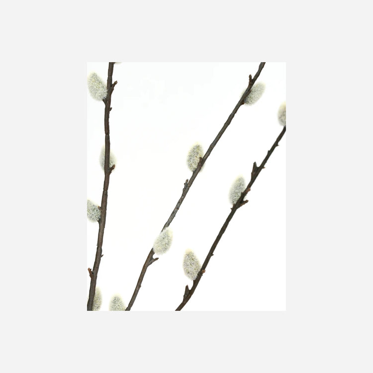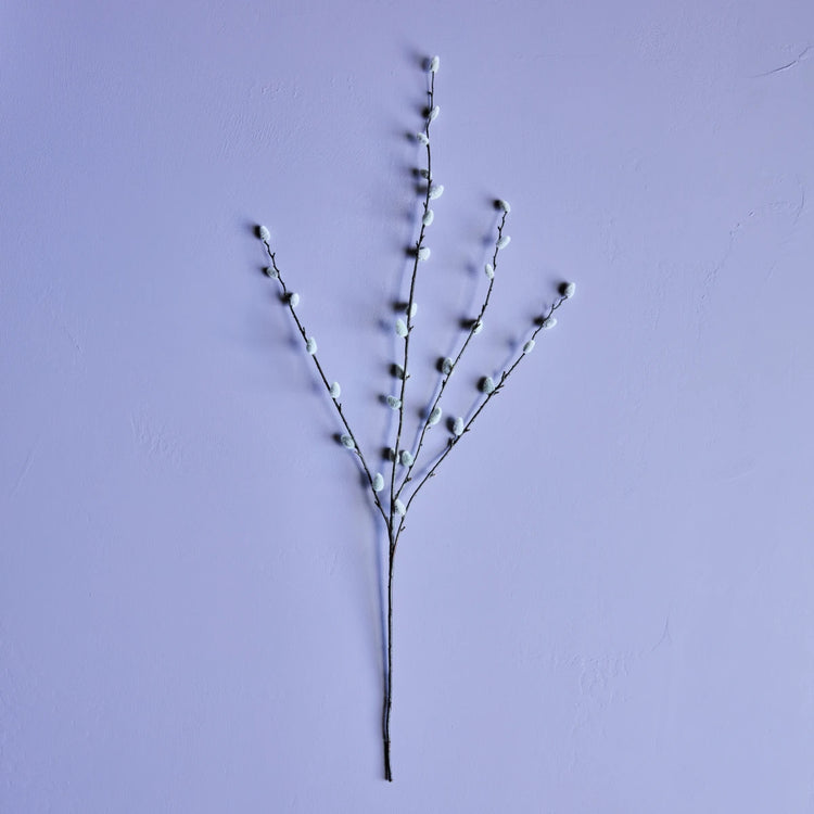 This delicate green branch features a frosted surface and fine branches. Place a single stem in a tall vase or gather several for a striking arrangement.