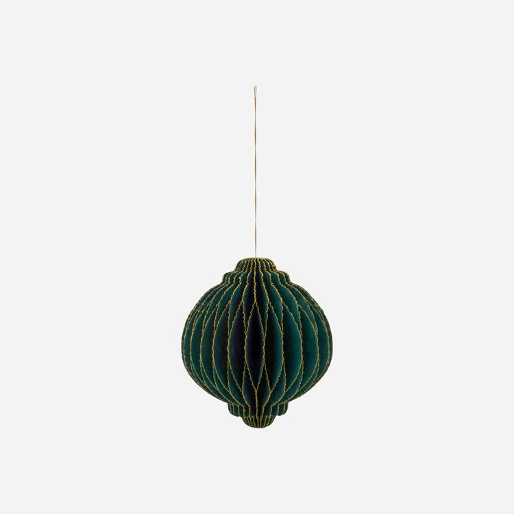 Create a magical festive atmosphere with this set of handcrafted green paper ornaments. Each ornament features deckled edges adorned with gold glitter, adding a touch of elegance and sparkle. Hang them together on a branch or place them in a decorative dish for a stylish display.