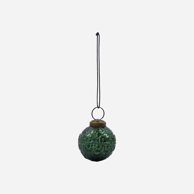 Elevate your festive décor with these exquisite green glass ornaments. Handcrafted with care, each piece in this set of three features a charming vintage-inspired pattern. The classic design ensures effortless integration with your existing decorations.