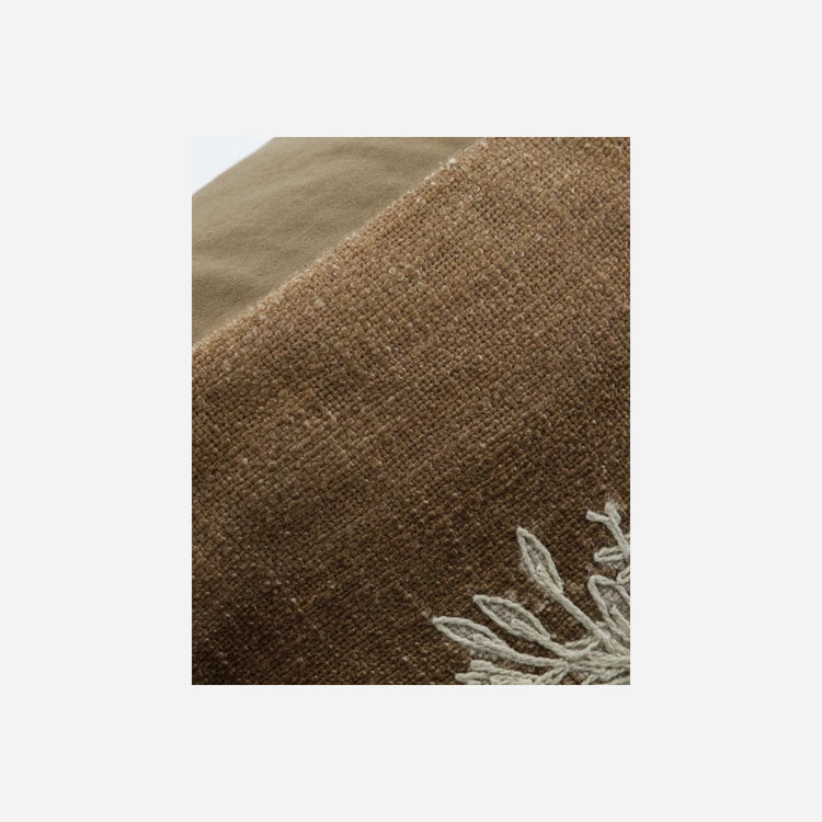 This handmade cushion cover in camel-coloured cotton is adorned with light organza floral embroidery, adding a feminine touch to any home decor. The intricate detailing and rich brown hue create a warm and inviting atmosphere, perfect for any living space.- Handmade, unique piece- Soft cotton material- Elegant floral embroidery- Convenient zipper closureElevate your home decor with this exquisite cushion cover.