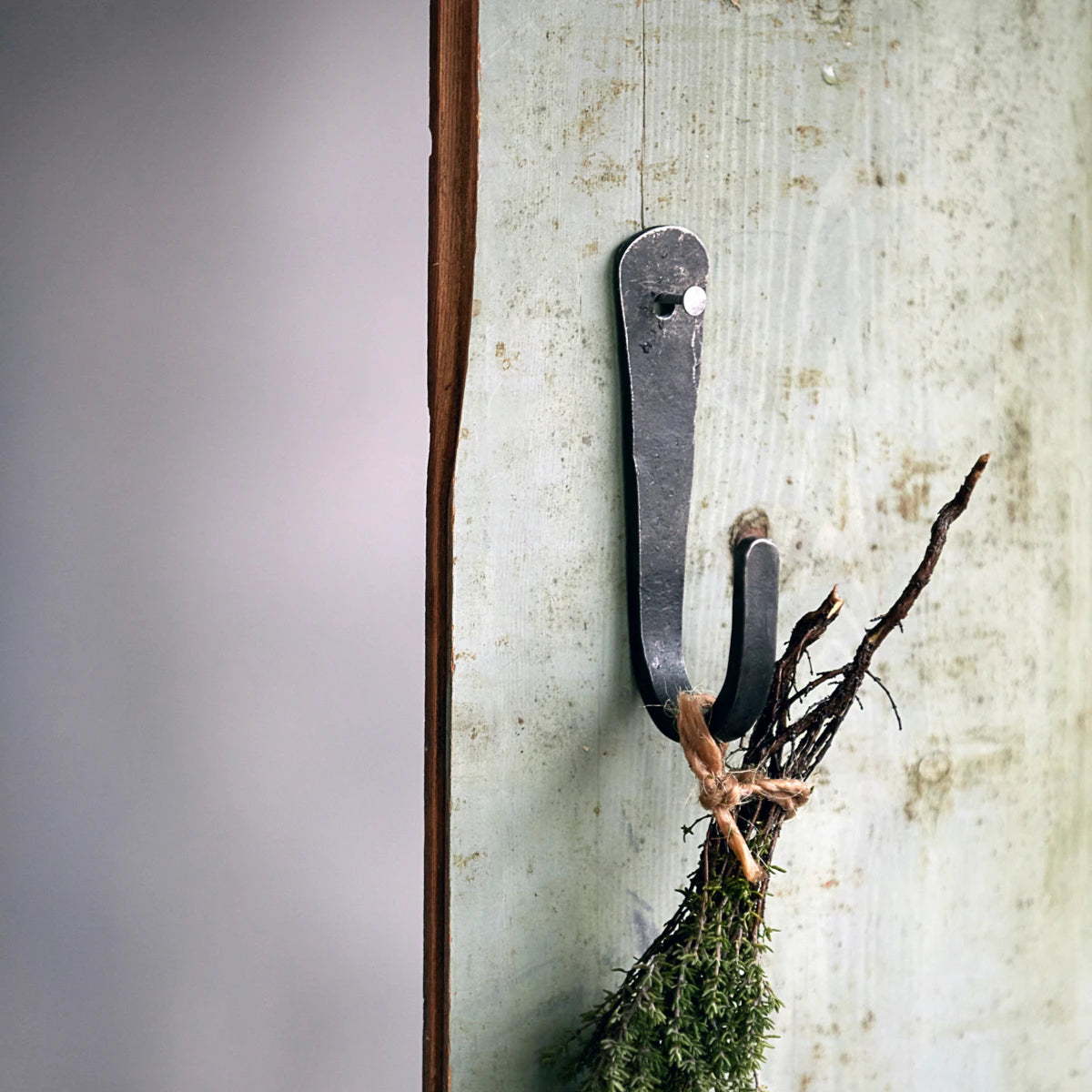 Basic from House Doctor is a simple hook with a rustic, handmade finish. The hook is made of raw iron and has been given a black colour. Use the hook in the hallway, or in the bedroom for coats, jackets, bags, or jewellery. Please note that the material is susceptible to rust if it comes into direct contact with water.
