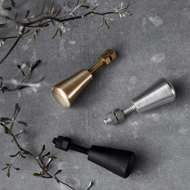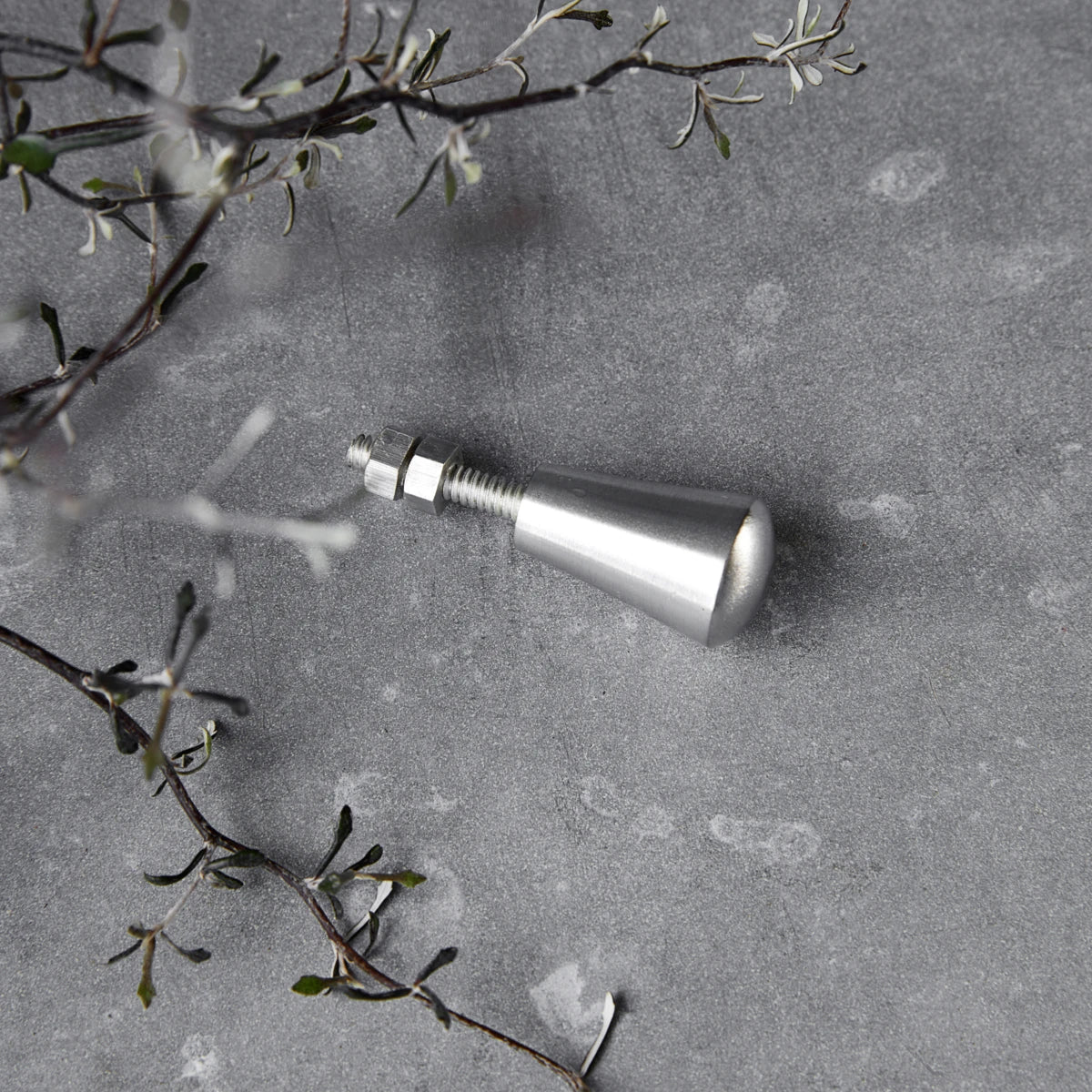 Small details can make your home more personal. Knop from House Doctor is a set of 2 knobs made of brass with a decorative silver finish. The knobs can be used in the bedroom, kitchen or bathroom to add a new look to your kitchen cabinet doors, dresser or closet. Their shape is the perfect way to add a personal touch to your home. The knobs come in a set of 2 pieces in the same size. Please note that the material is susceptible to rust if it comes into direct contact with water. Clean with a dry cloth.