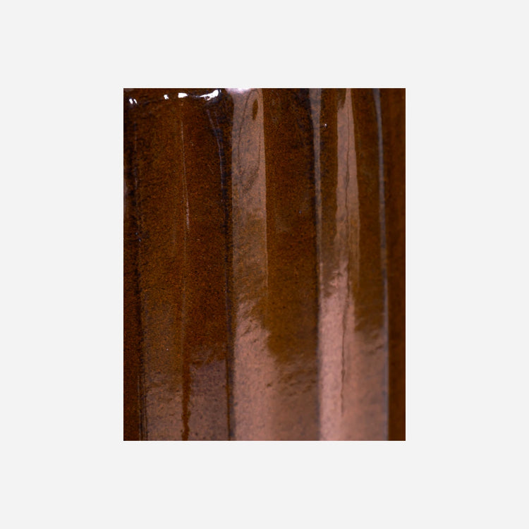 Add depth and elegance to your outdoor space with this set of two flowerpots in a glossy brown finish. Their ribbed design beautifully complements diverse plantings, offering a modern and timeless aesthetic. Made from recycled steel, each pot has slight variations in texture, adding a unique character. The practical drain hole and plug ensure your plants receive optimal care, making these pots ideal for terraces and balconies.