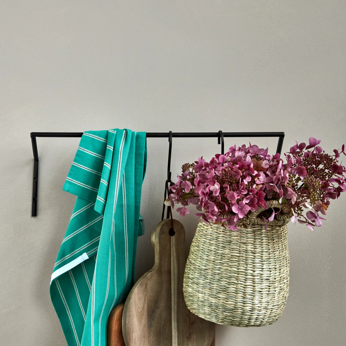 Organise and style your hallway or wardrobe with this sleek iron rod. Its practical and timeless design makes it a versatile addition to your interior, seamlessly blending with various styles. Perfect for combining with S-hooks, it allows you to hang tea towels, baskets, and cutting boards, enhancing your space's functionality without compromising on aesthetics. An elegant solution for maintaining order in your home.