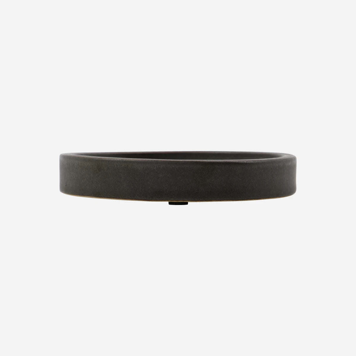 Add a calming touch by your sink with this dark grey earthenware soap dish.