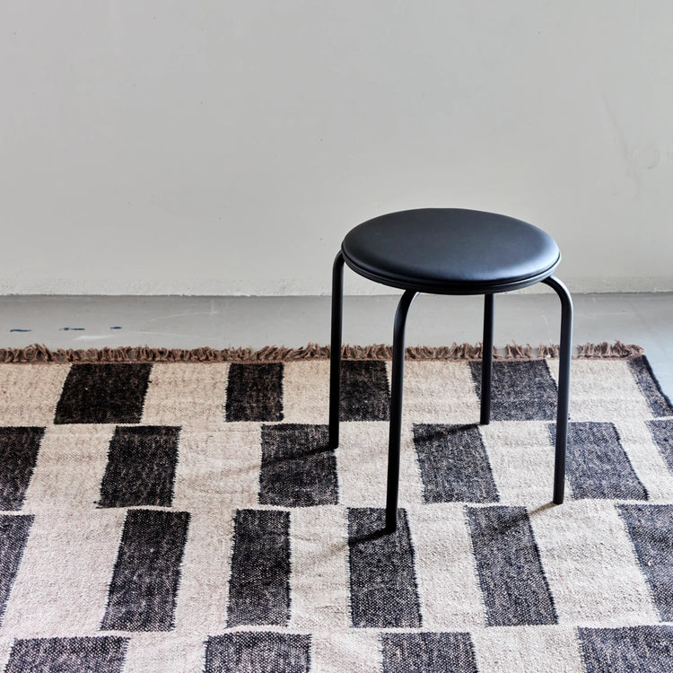 HDPova is a minimalist, black stool with an upholstered seat for added comfort. The black steel legs give it a light, timeless expression.