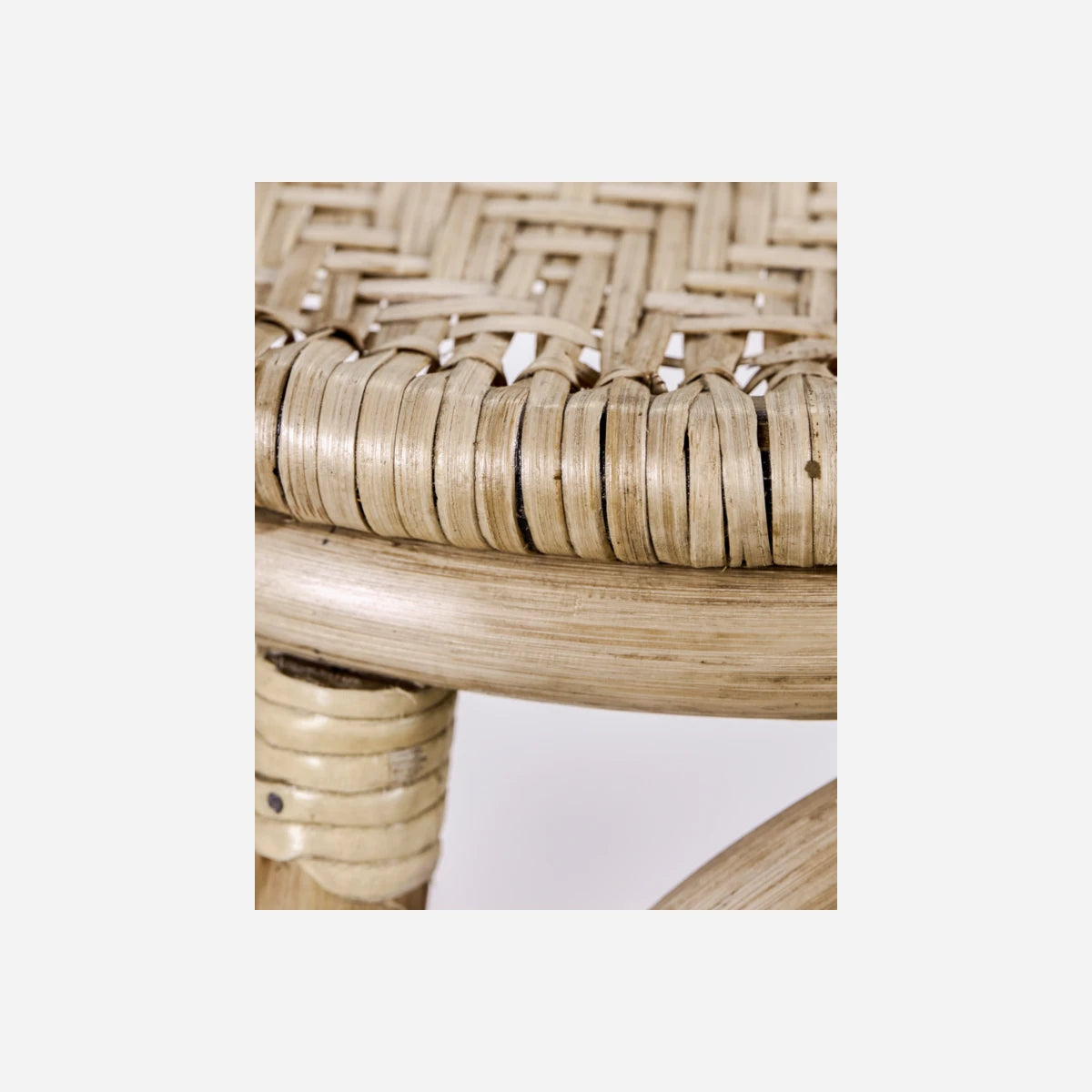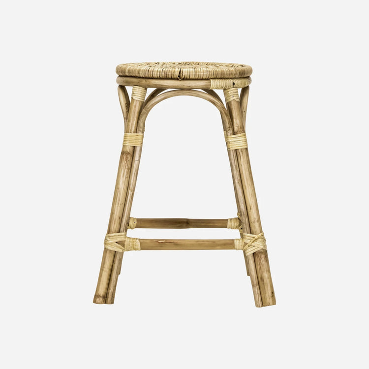 Handcrafted from natural cane, this stool brings rustic charm and versatility to your home. Its intricate handwoven design adds warmth, making it a perfect addition to your bathroom, hallway, or bedroom as a stool or side table. Position it at the dining table for a touch of artisanal elegance. Each piece may have slight variations in finish and size, adding unique character to your interior.