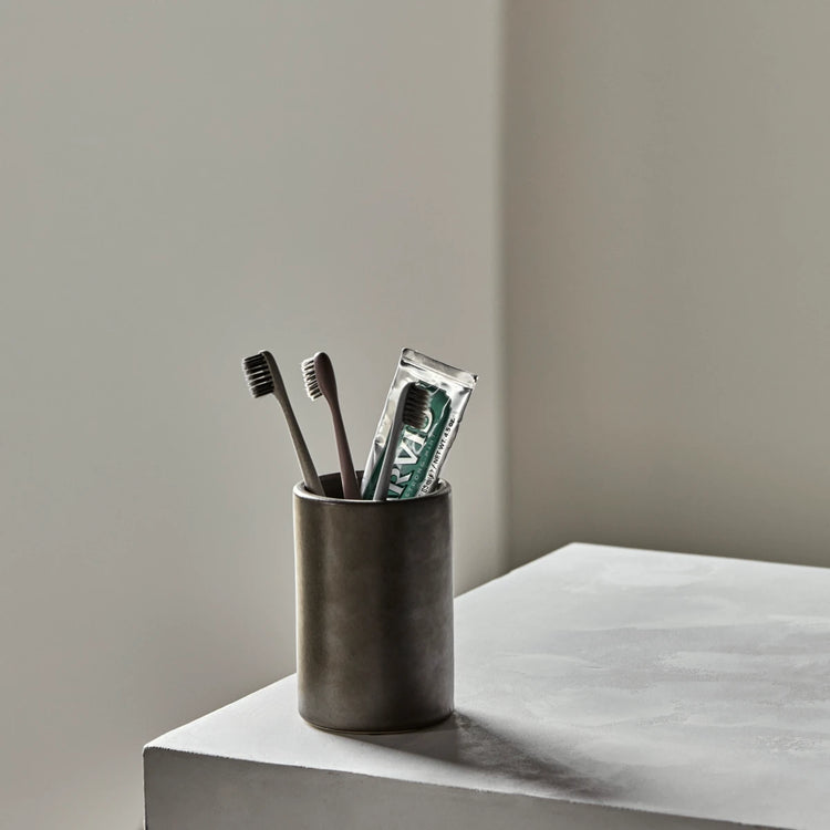 Store everyday essentials in this dark grey ceramic jar and create a calm, balanced look in your home.