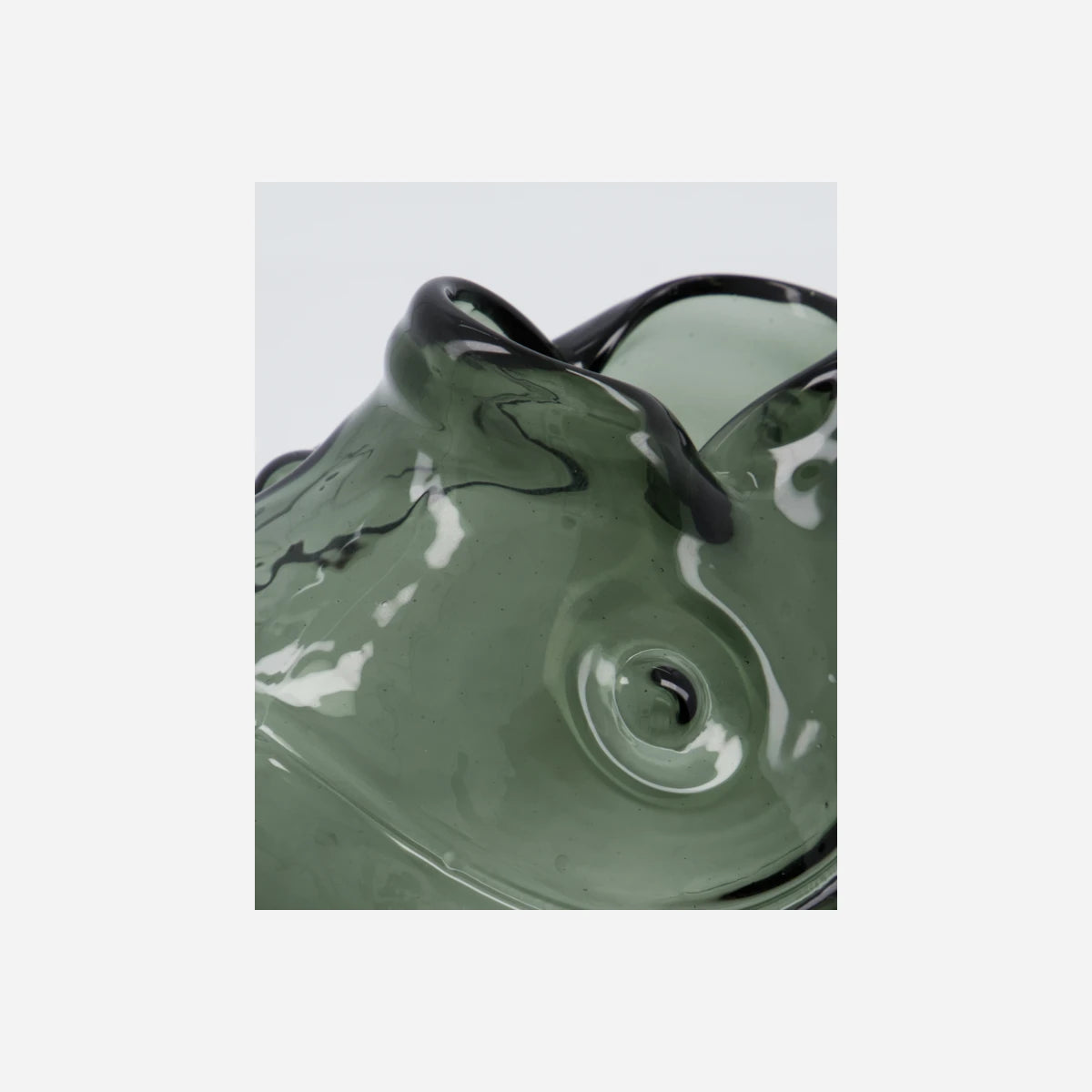 Bring a touch of whimsy to your home decor with this uniquely crafted vase. Mouthblown with skill, the smoked grey glass forms an enchanting fish shape, adding personality and charm to any room. Its handmade nature ensures that each piece is one-of-a-kind, making it a special addition to your collection. Whether placed on a shelf or table, it serves as a delightful focal point that invites conversation and interest.