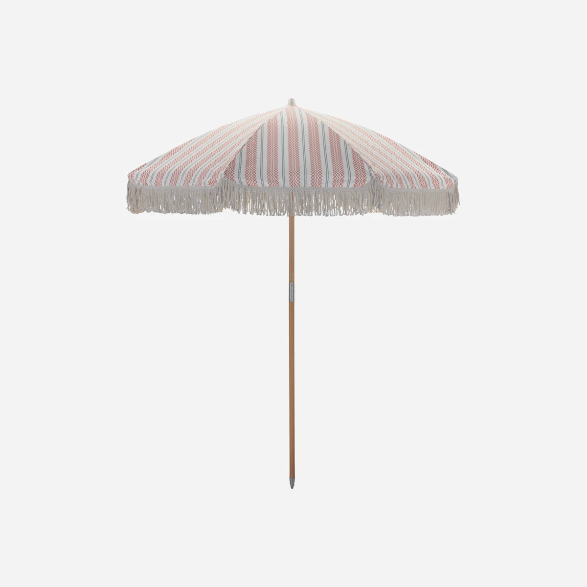 Enjoy a warm summer day in the shade thanks to Umbra, a garden umbrella designed by House Doctor. With its green and red colourscheme along with long, thick fringes, the umbrella lends your outdoor area a stylish look with an unmistakable hint of vintage. Whether your terrace is furnished with wooden, concrete or metal furniture, this garden umbrella elevates the overall look and gives the area a refined, yet relaxed expression. The wooden pole can be taken apart, so you can put the garden umbrella in the bag for easy storage. Base not included. The diameter of the pole is 32mm.