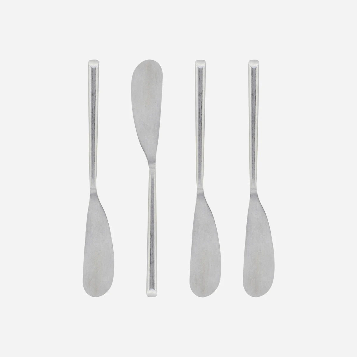 Add butter knives as the finishing touch to a well-considered table arrangement. Nicolas Vahé gives you a set of 4 knives in brushed stainless steel for a minimalist look. Use a butter knife instead of a regular knife to avoid bits of food in the butter on the table. It is simply a proper and stylish way to set the table. Make the knives a natural and elegant part of the table setting for dinner parties and afternoon teas where guests can help themselves. The butter knives are part of the timeless range of kitchen items called Daily.