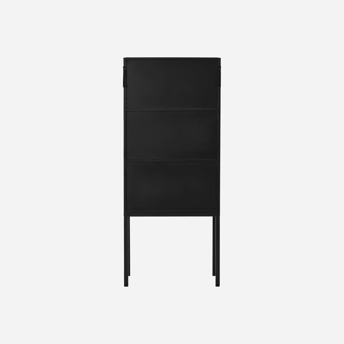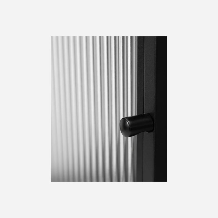 The HDCabin cabinet is made of a black iron frame with tempered glass doors that create a subtle blurring effect.
