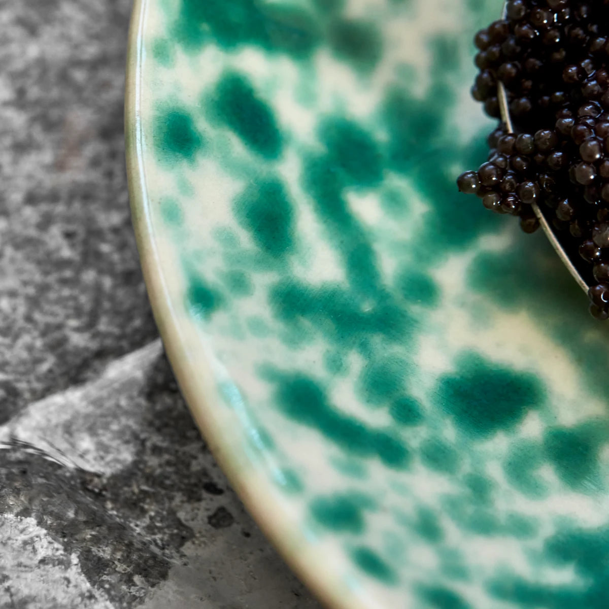 Bring a fresh touch to your dining experience with this vibrant dessert plate. Crafted from durable stoneware, it features a hand-painted green splash design that adds a lively and modern element to your table setting. Perfect for mixing and matching with other pieces from the series, this plate effortlessly blends style with functionality, making it an ideal choice for both everyday use and special occasions.
